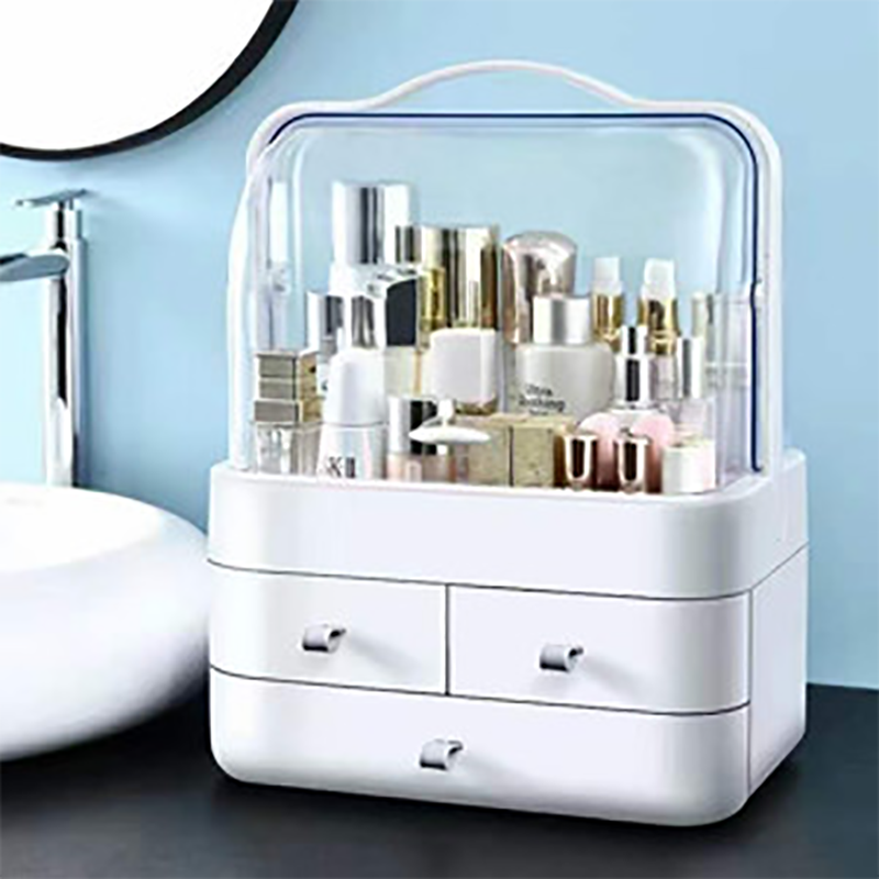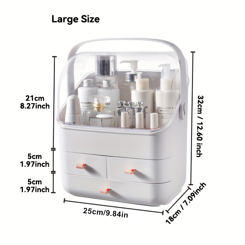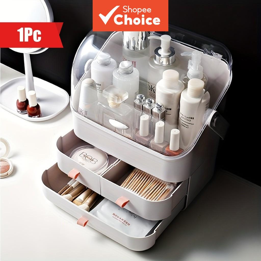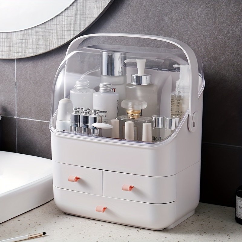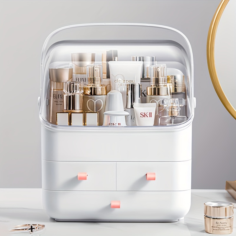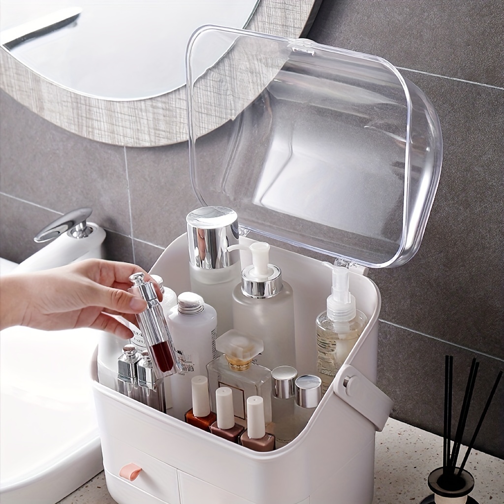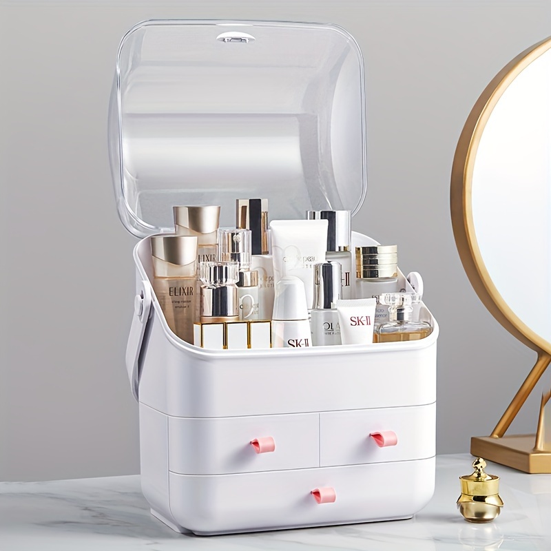 1 Cosmetic Storage Box With Lid And Handle, Drawer-Style Multi-Layer Storage, Large Capacity