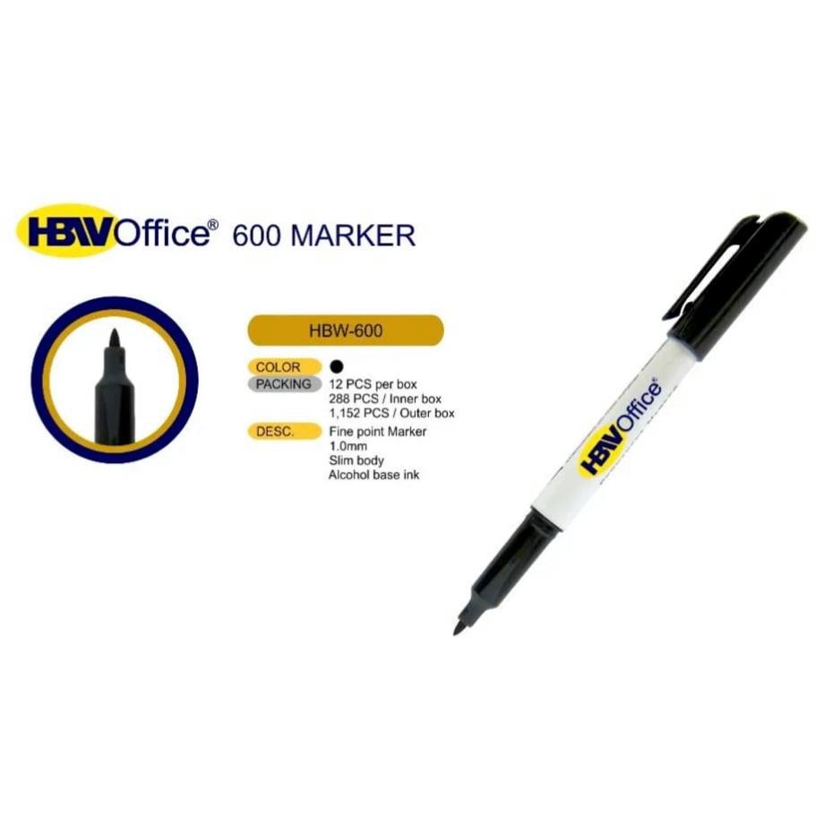 1 DZ BLACK ink HBW No. 600 PERMANENT Marker, Fine Point Tip is 1.0MM, sold per box (12pcs per box)
