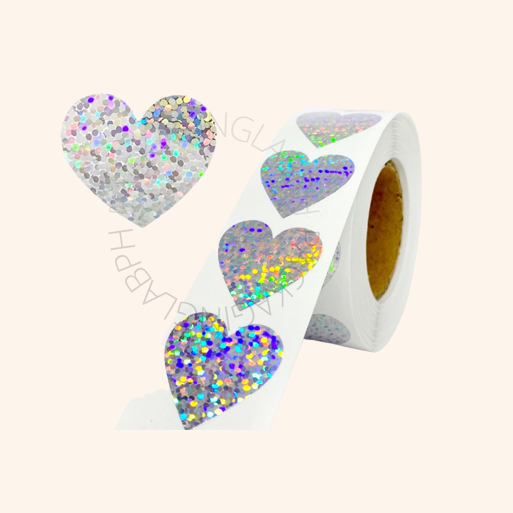 1" Holographic Heart and Round Sticker Food Packaging Stickers