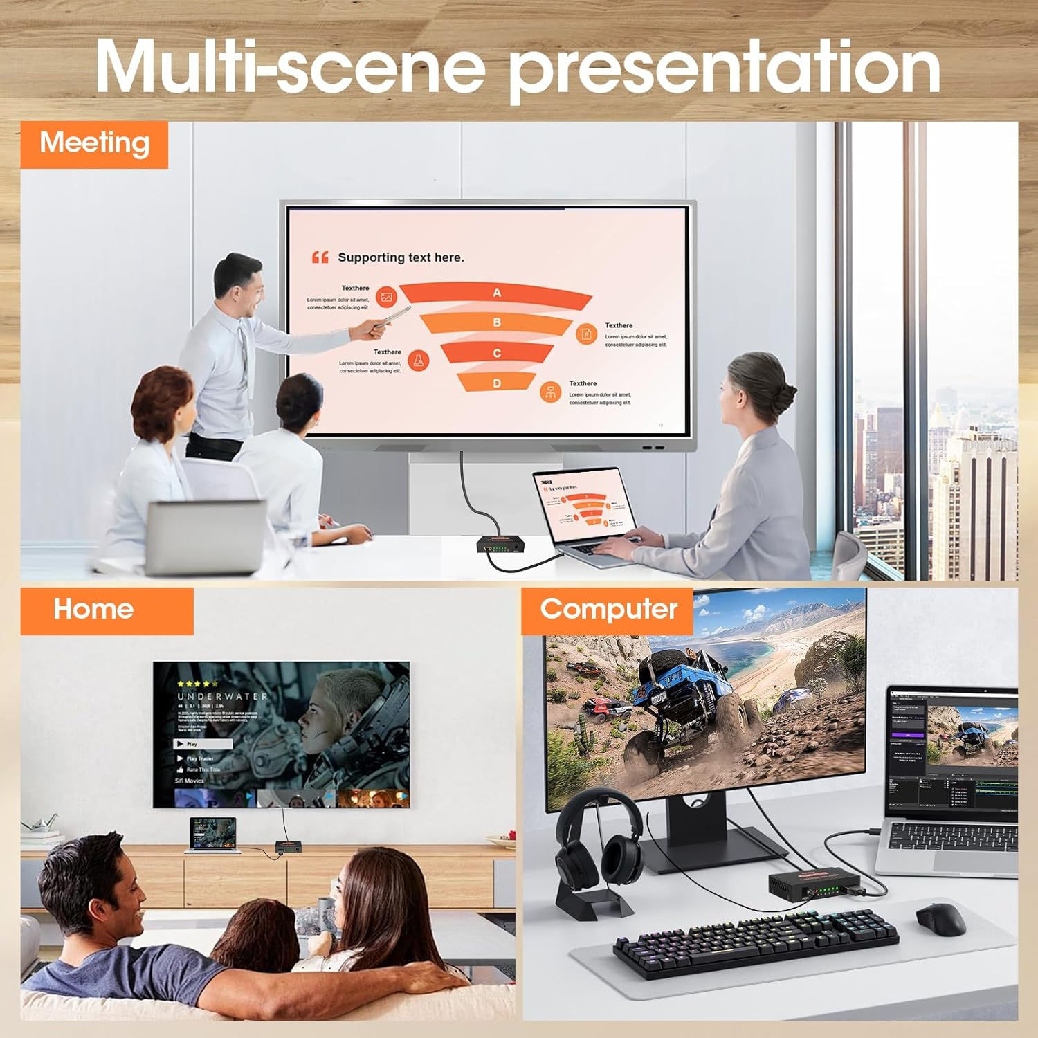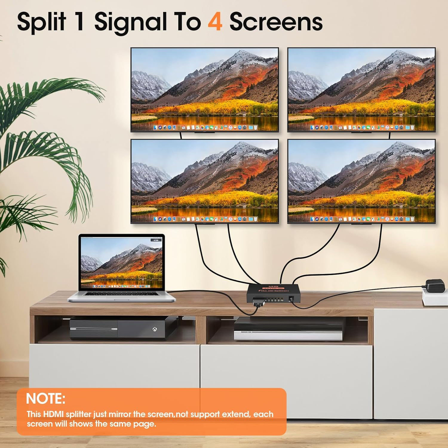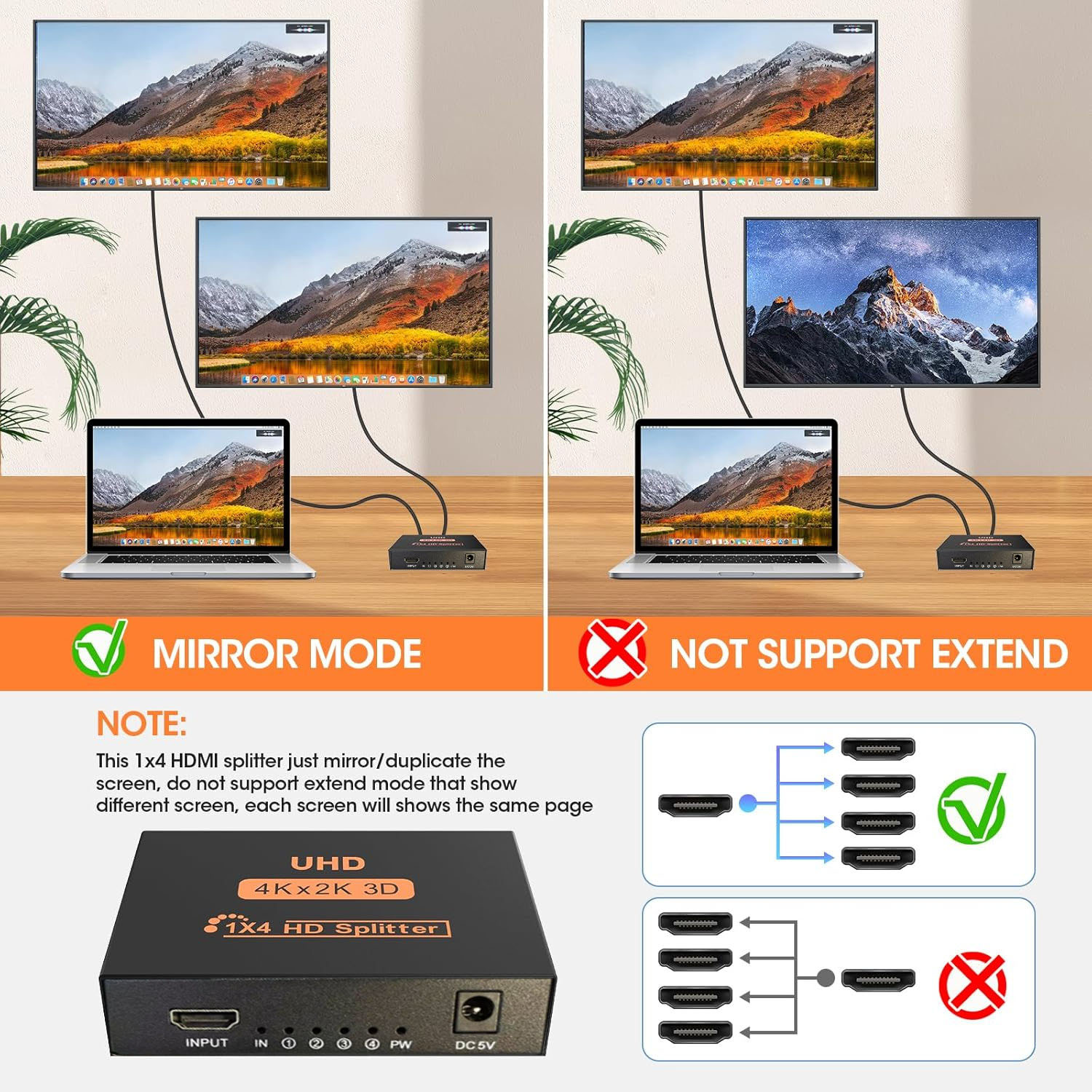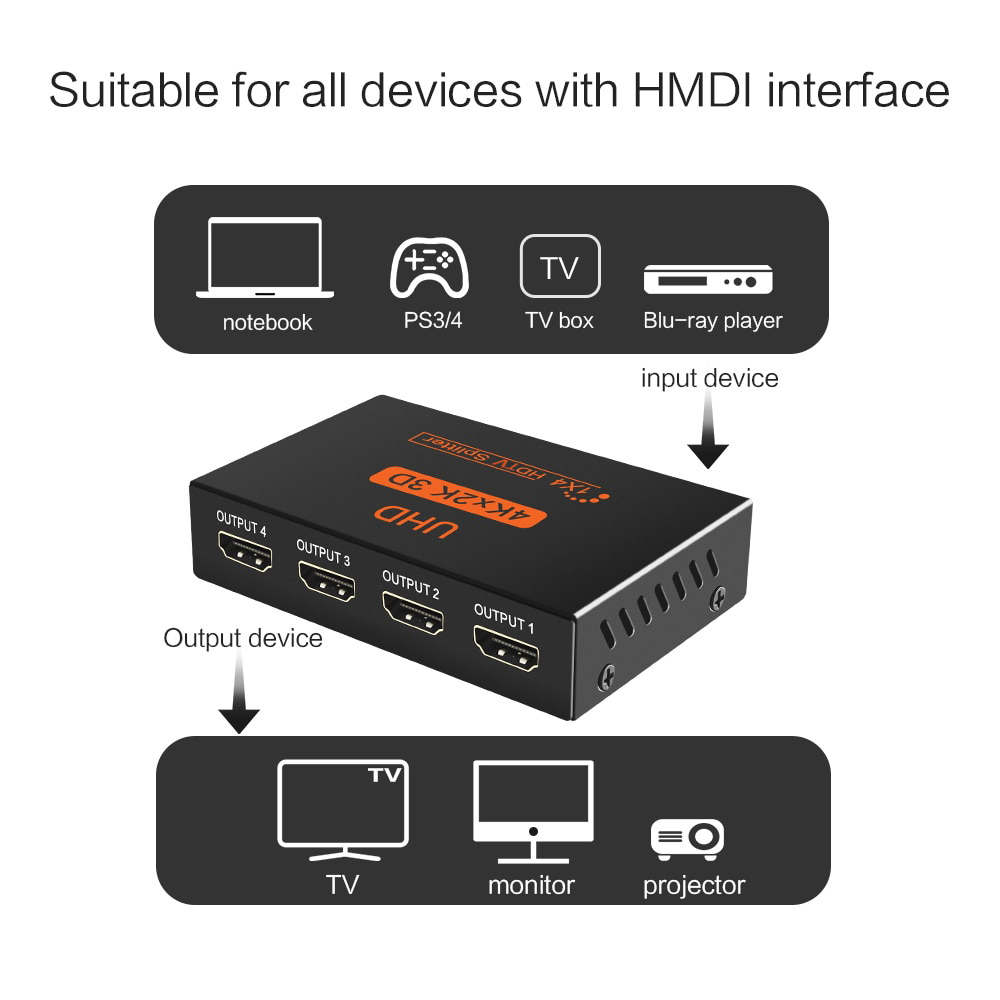 1 In 4 Out HDMI Splitter Splitter Amplifier HDCP 1080P 4K Dual Display for HDTV DVD PS3 Xbox