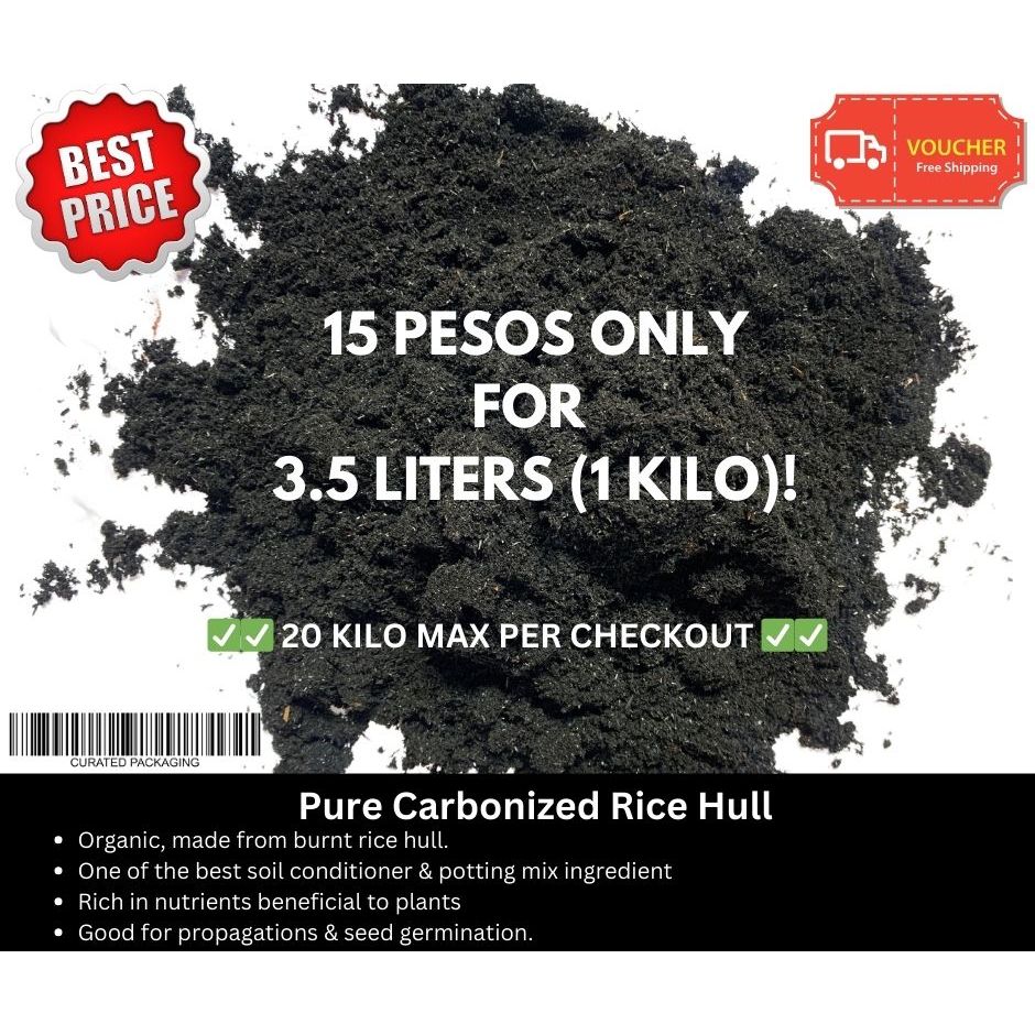 1 Kilo Bag (3.5 Liters) Premium Carbonized Rice Hull (CRH) by Curated Packaging