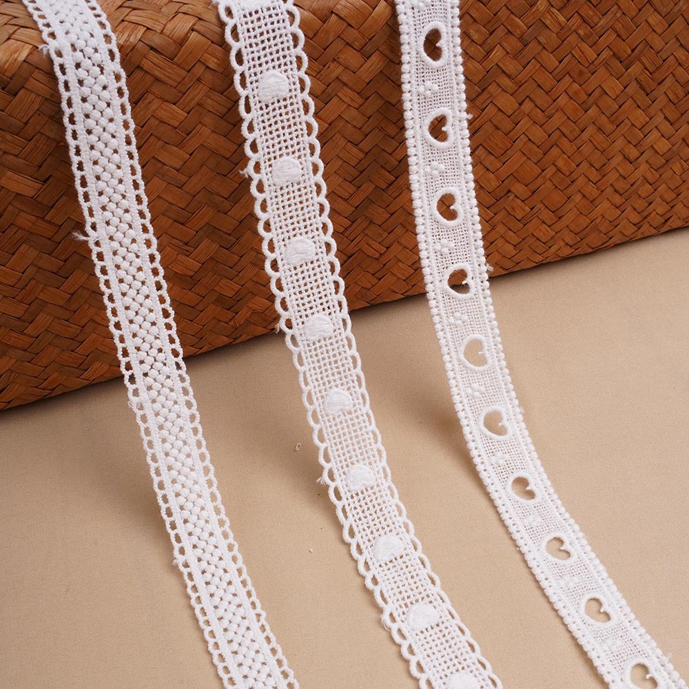 1 Meter DIY White Lace Trim Embroidery Cotton Thread Flowers Love Double Lock lace For Crafts Sewing Accessories Ribbon