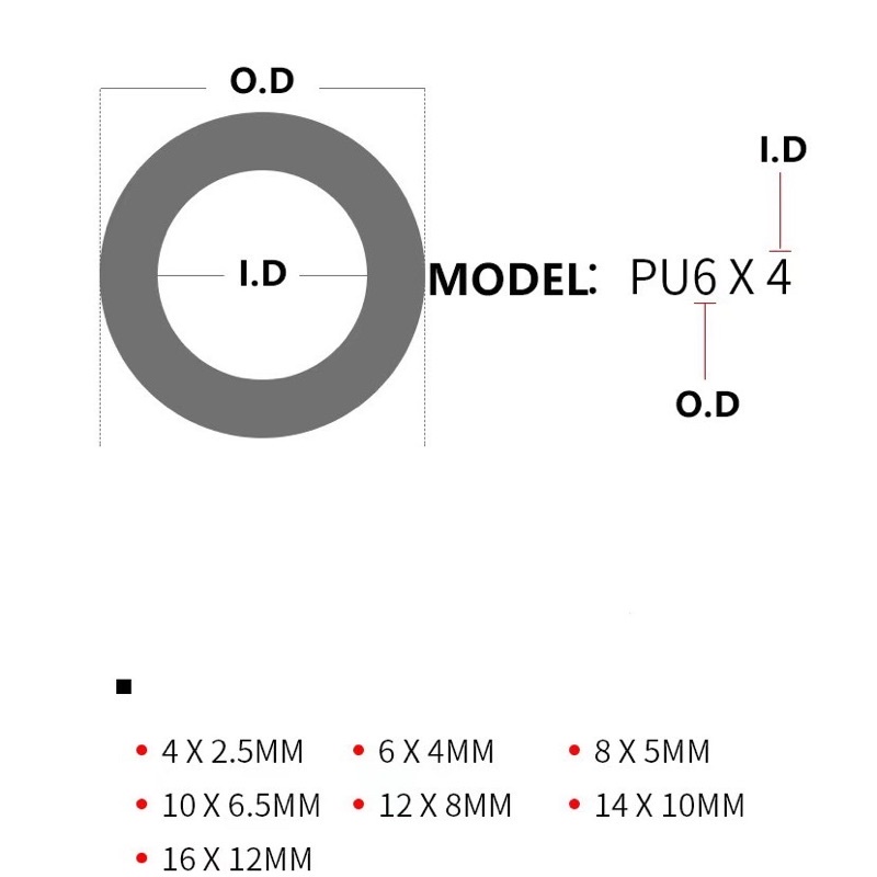 1 Meter Pneumatic Pipe Tube Air Hose diameter 12*8mm 10*6.5mm 8*5mm 6*4mm 4*2.5mm PU Air Gas Pipe