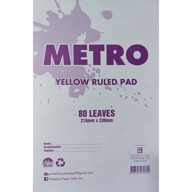 1 PAD ONLY METRO Yellow Pad Paper , Yellow Ruled Pad Paper , sold per PAD , Yellow Pad 80 leaves