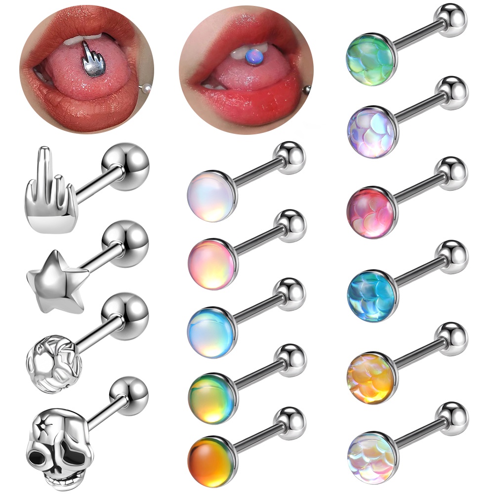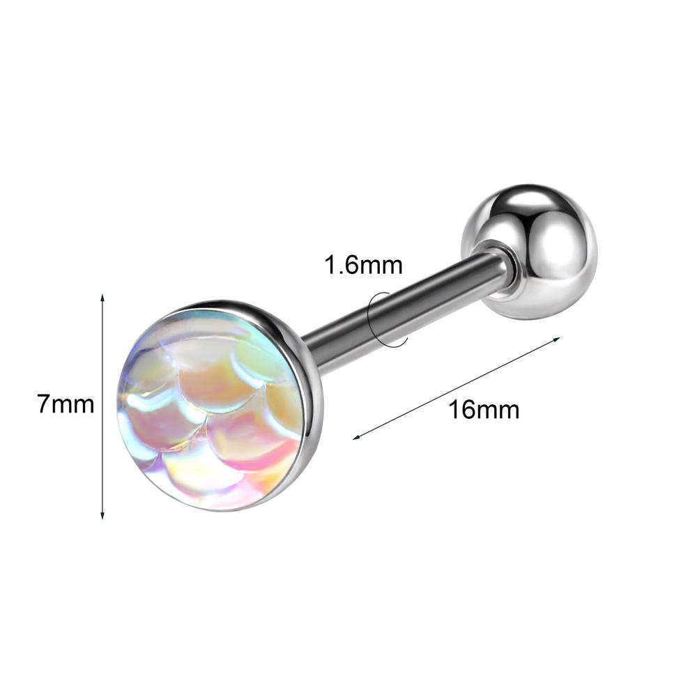 1 PC 14G Colorful Scale Tongue Piercing Stainless Steel Skull Tongue Ring Round Industrial Barbell Rings Body Piercing