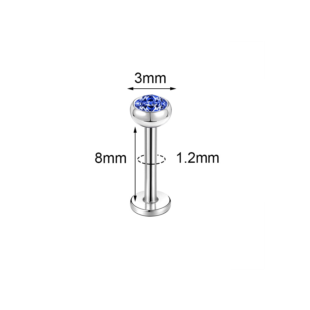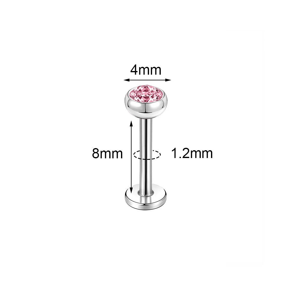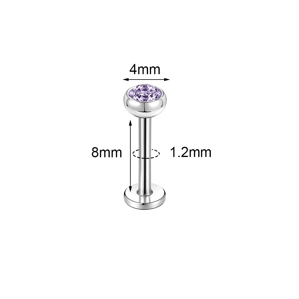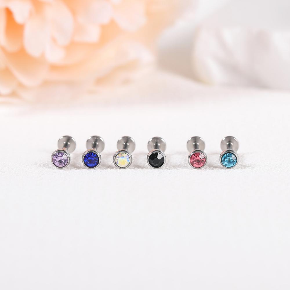 1 PC 2/3/4mm Color Crystal Lip Stud Stainless Steel Labret Piercing Cartilage Stud Earrings Helix Conch Medusa Piercings