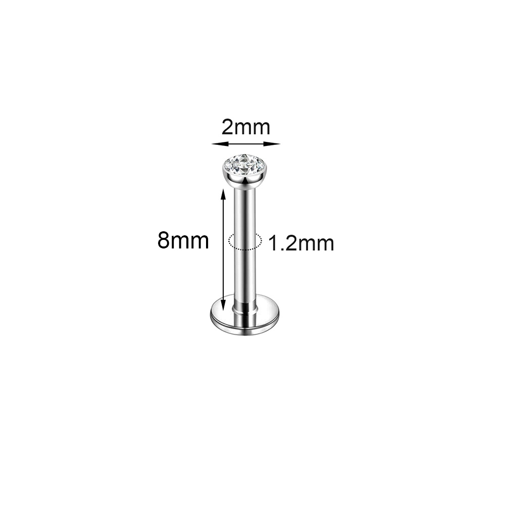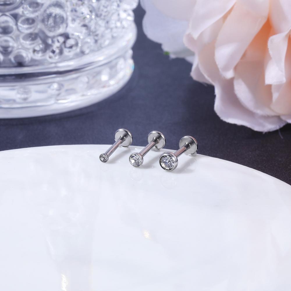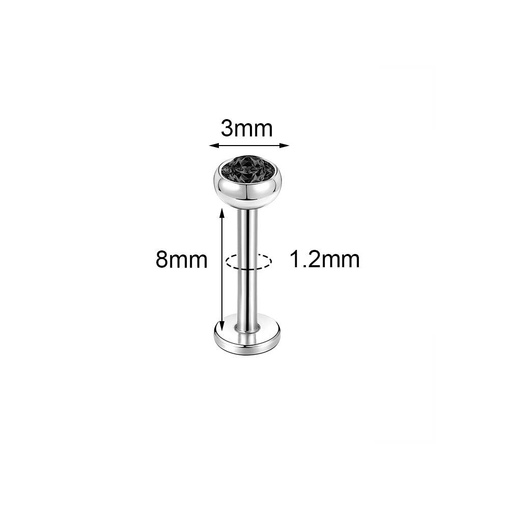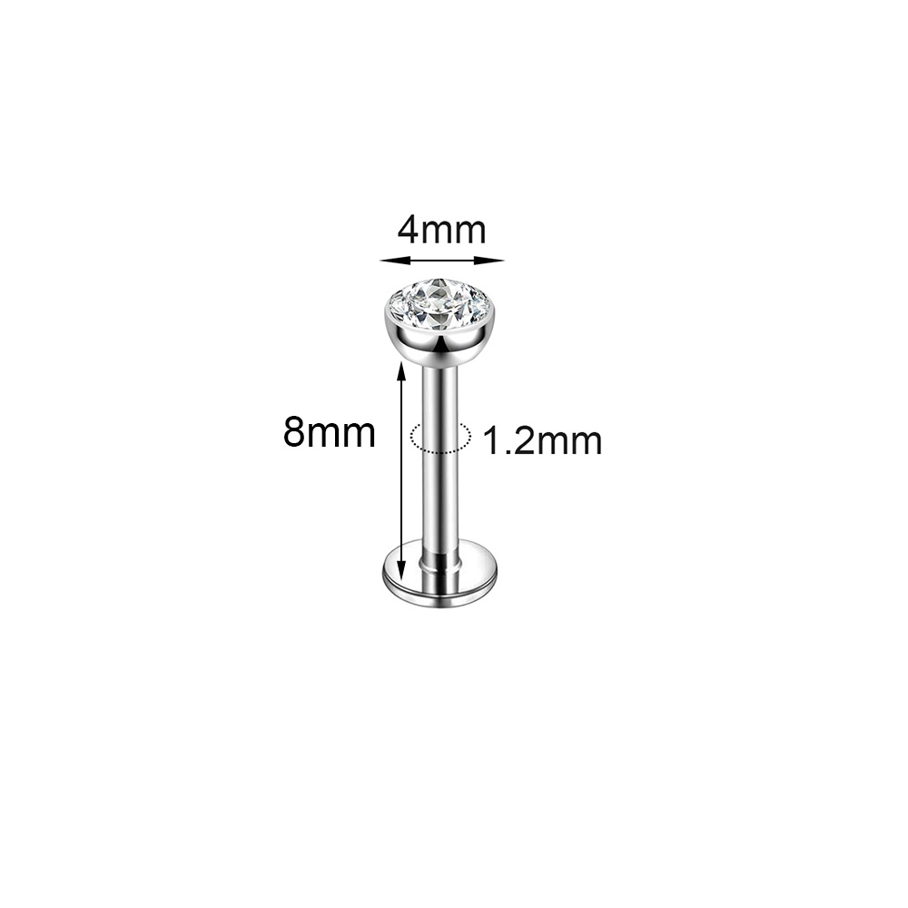 1 PC 2/3/4mm Color Crystal Lip Stud Stainless Steel Labret Piercing Cartilage Stud Earrings Helix Conch Medusa Piercings