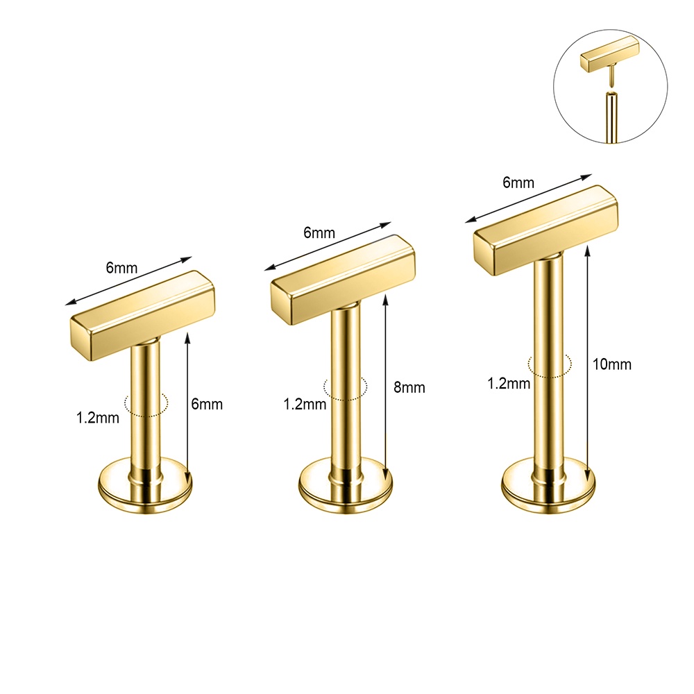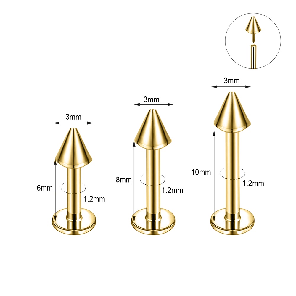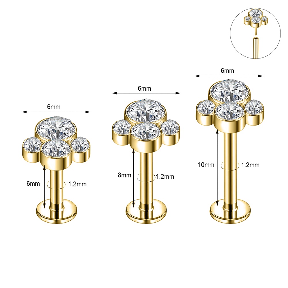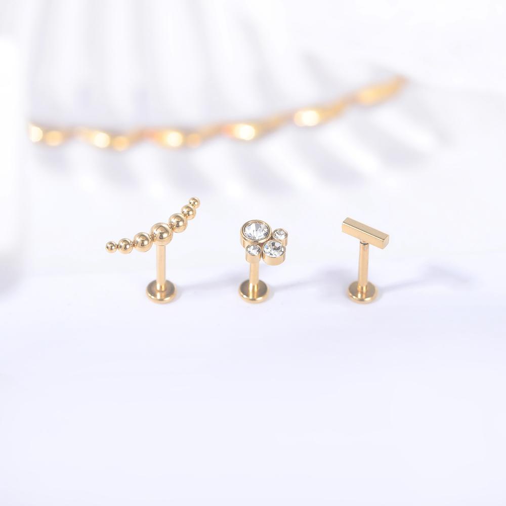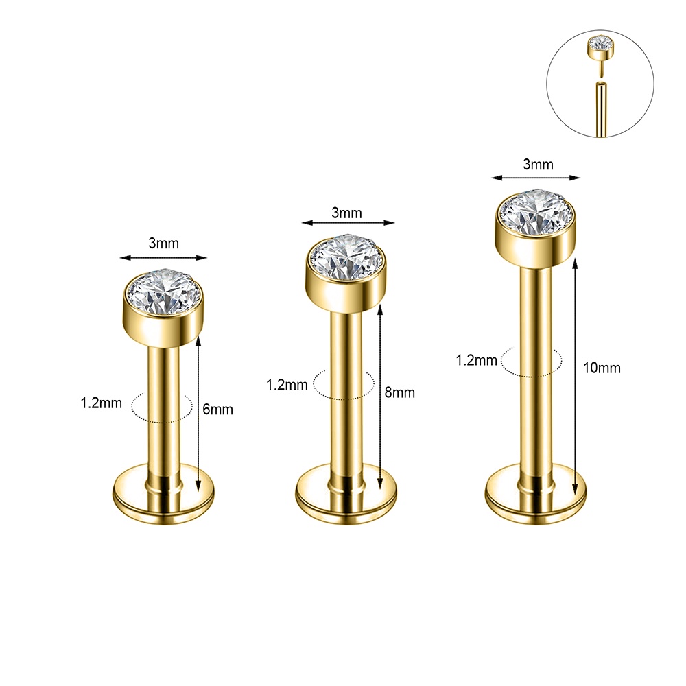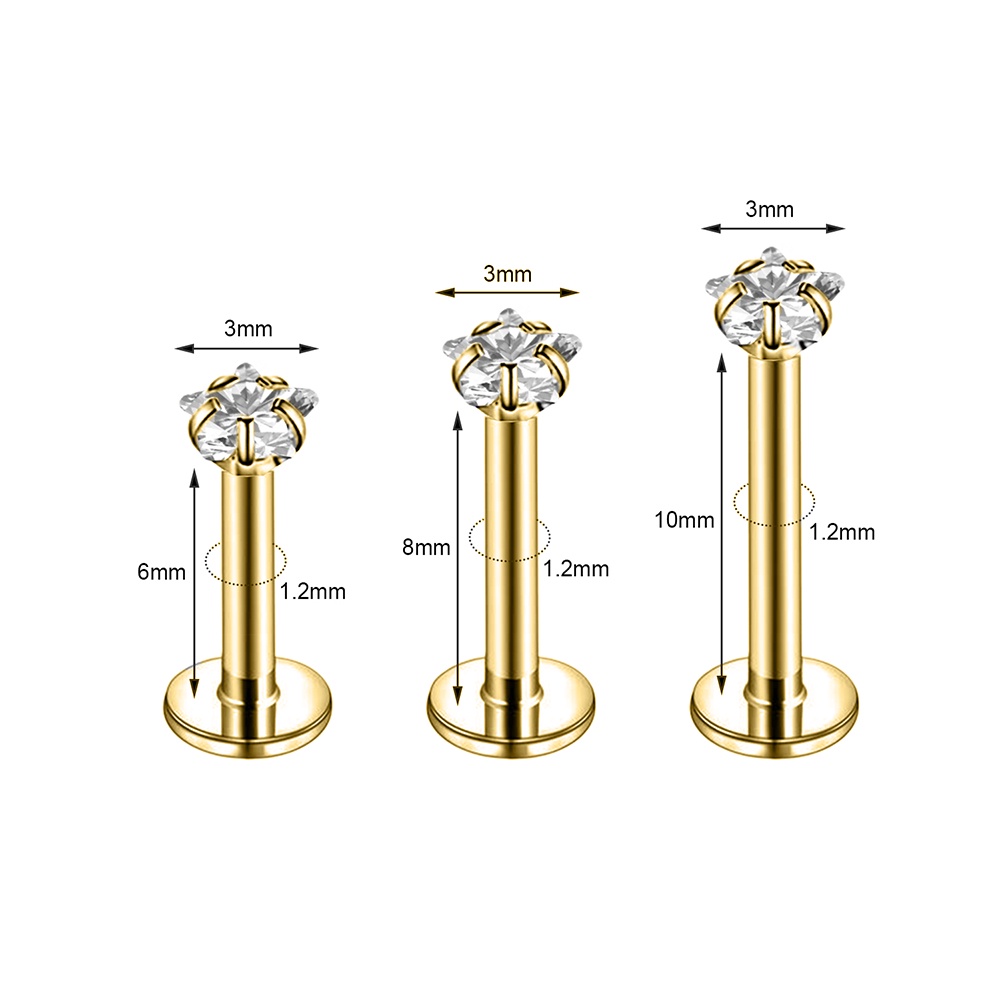 1 PC 6/8mm Plug In Style Gold Color Labret Piercing Stainless Steel Crystal Lip Stud Ear Cartilage Helix Conch Piercings