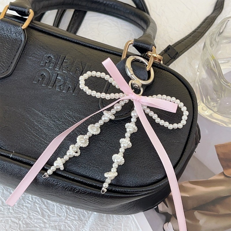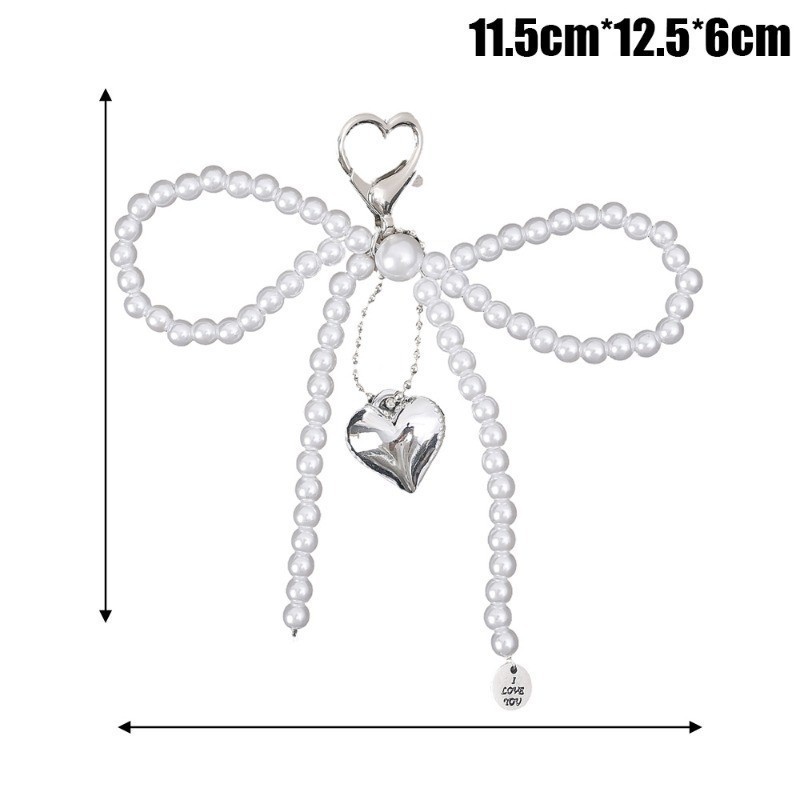 1 PC Pearl Bow Shaped Keychain - Girls Sweet Bowknot Ribbon Keyrings - Charm Fashion Backpacks Phones Pendant Key Chain
