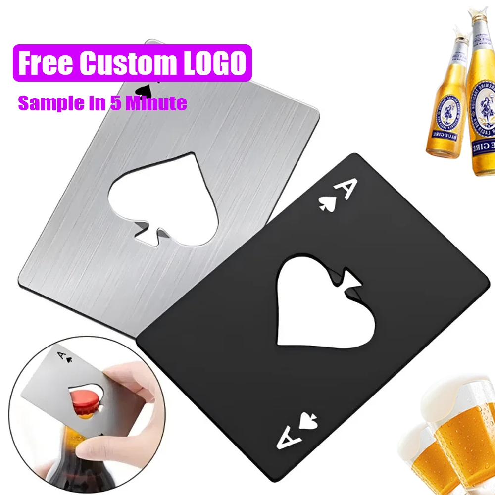 1 PCS Free Custom Logo Spade A Credit Card Style Bottle Opener Creative Playing Card Shaped Bottle Opener Beer Opener Stainless Steel Home Tool