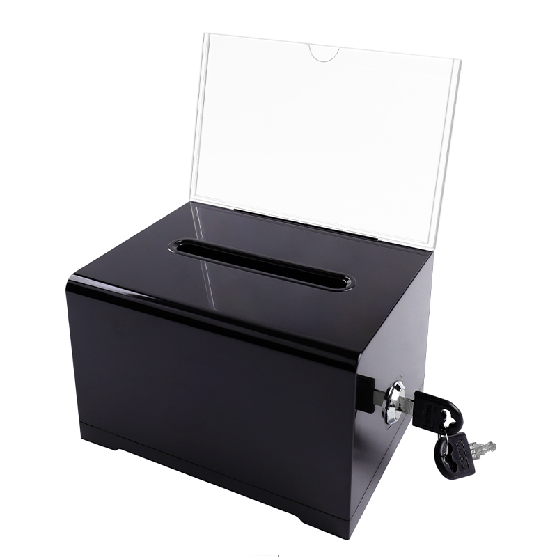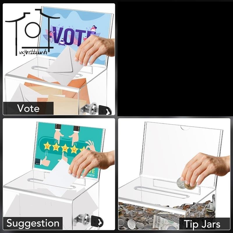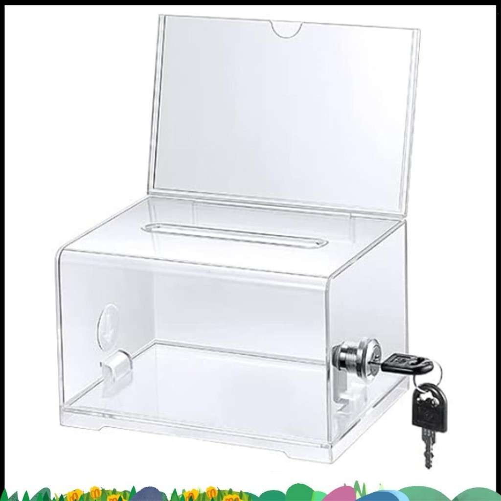 1 Pack Box Donation Box with Lock Clear Ballot Box with Sign Holder, Suggestion Box for Fundraising