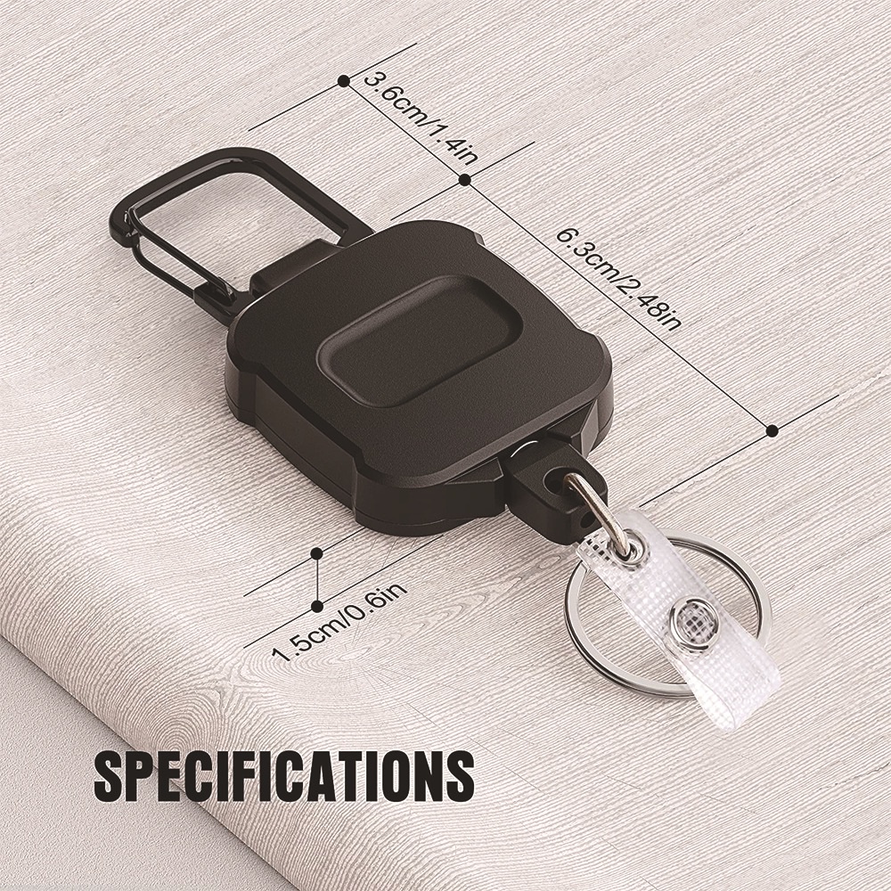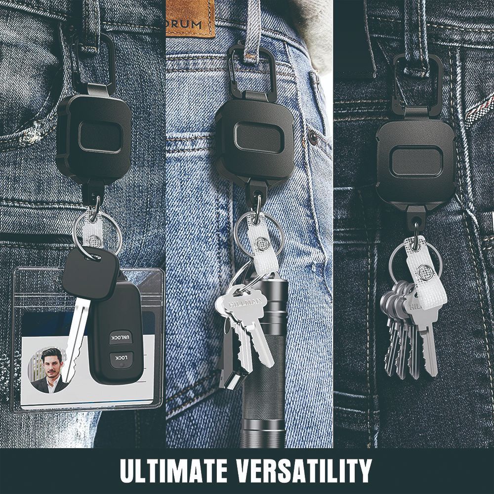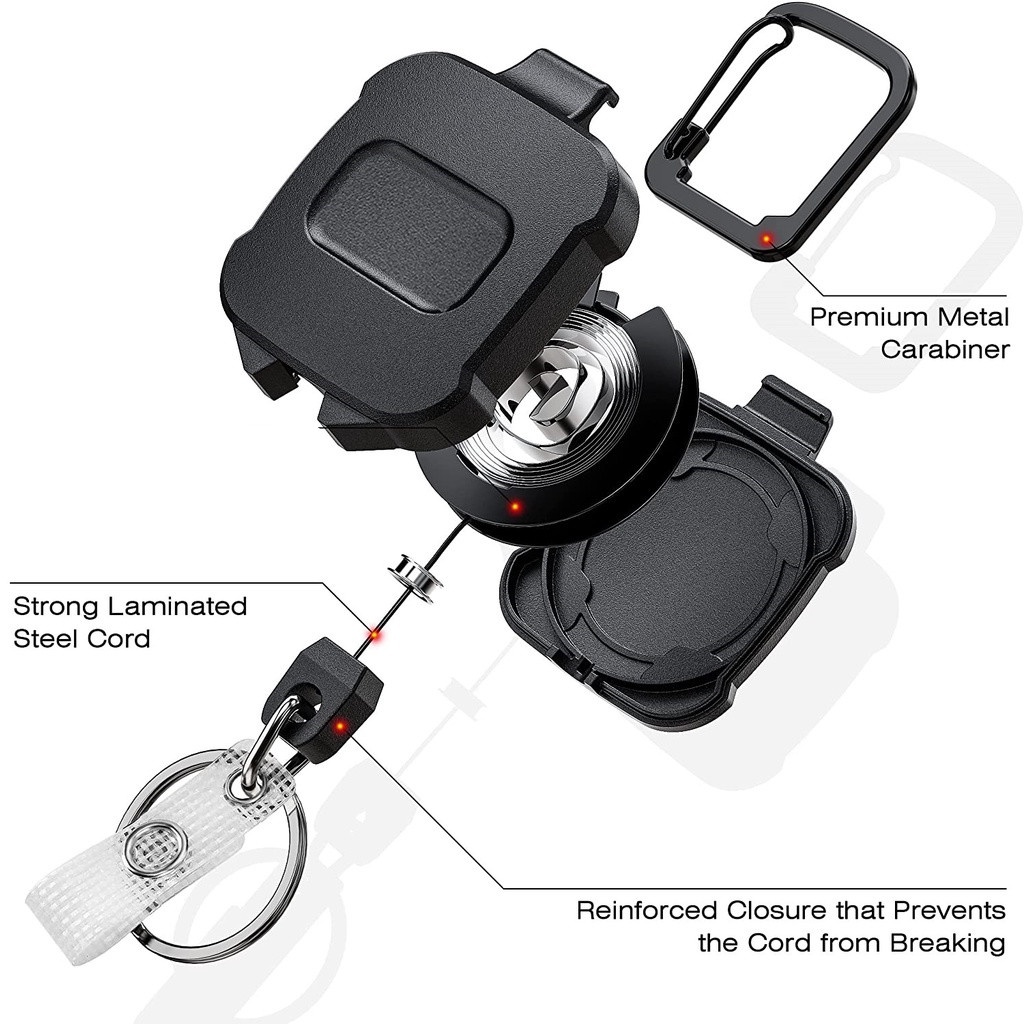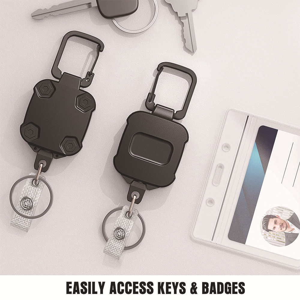 1 Pack ELV Self Retractable ID Badge Holder Key Reel, Heavy Duty, 32 Inches Cord, Carabiner Key Chain, Retractable Keychain Key Holder, Hold Up to 15 Keys and Tools (Black)