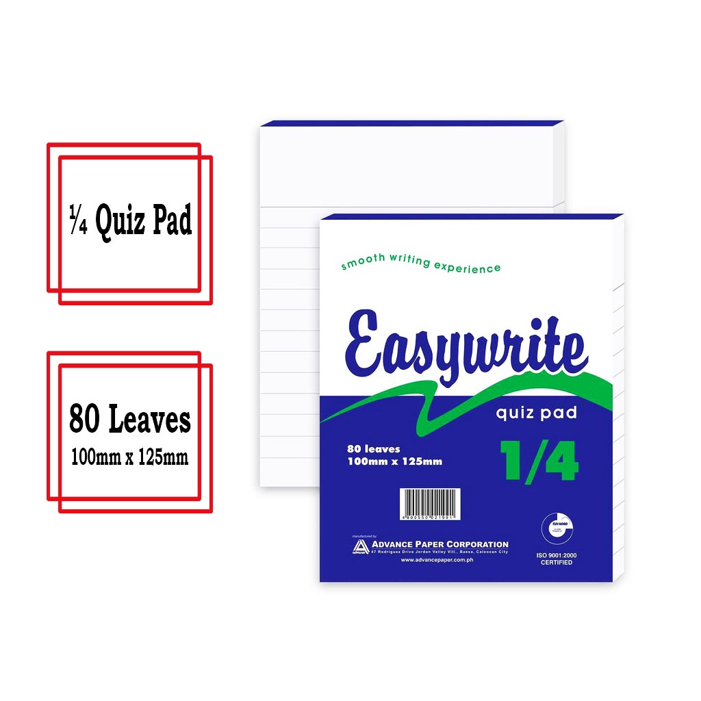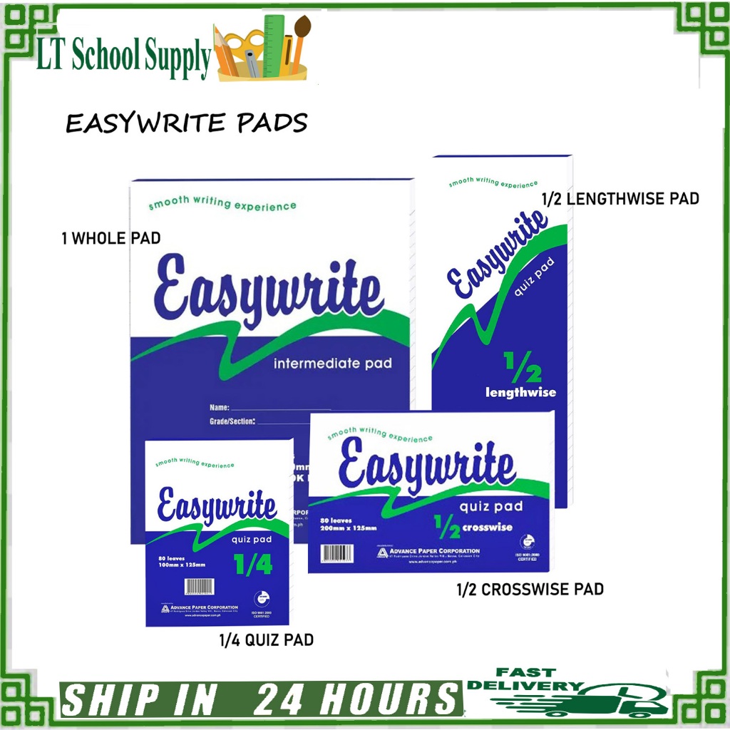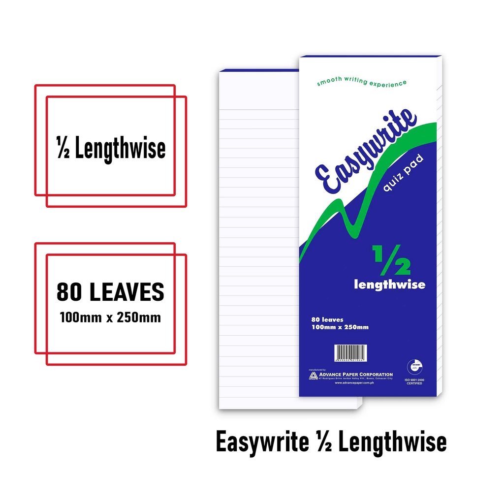 1 Pad Easywrite Quiz Pad 1/4, 1/2 Crosswise, Lengthwise, Intermediate Paper 80leaves