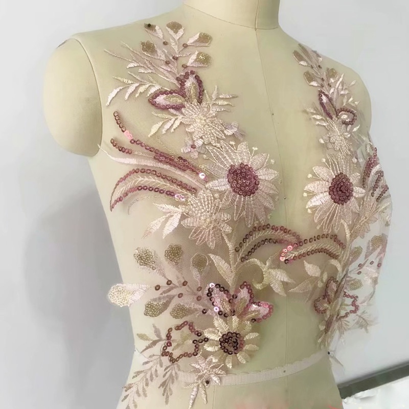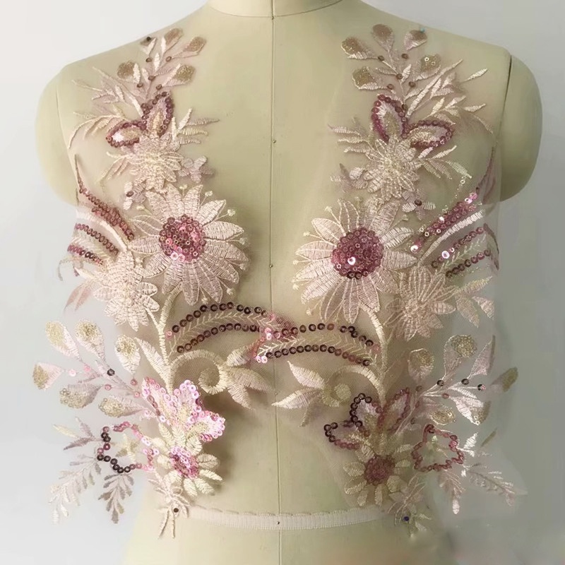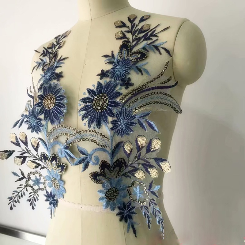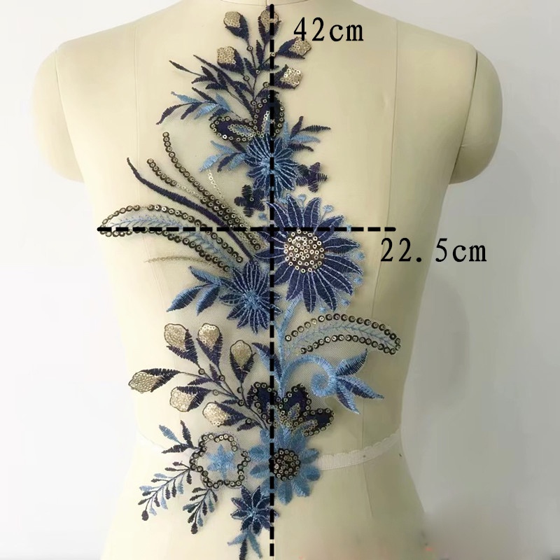 1 Pair Blue Pink Lace Patches Embroidery Sewing on Repair 42*22cm