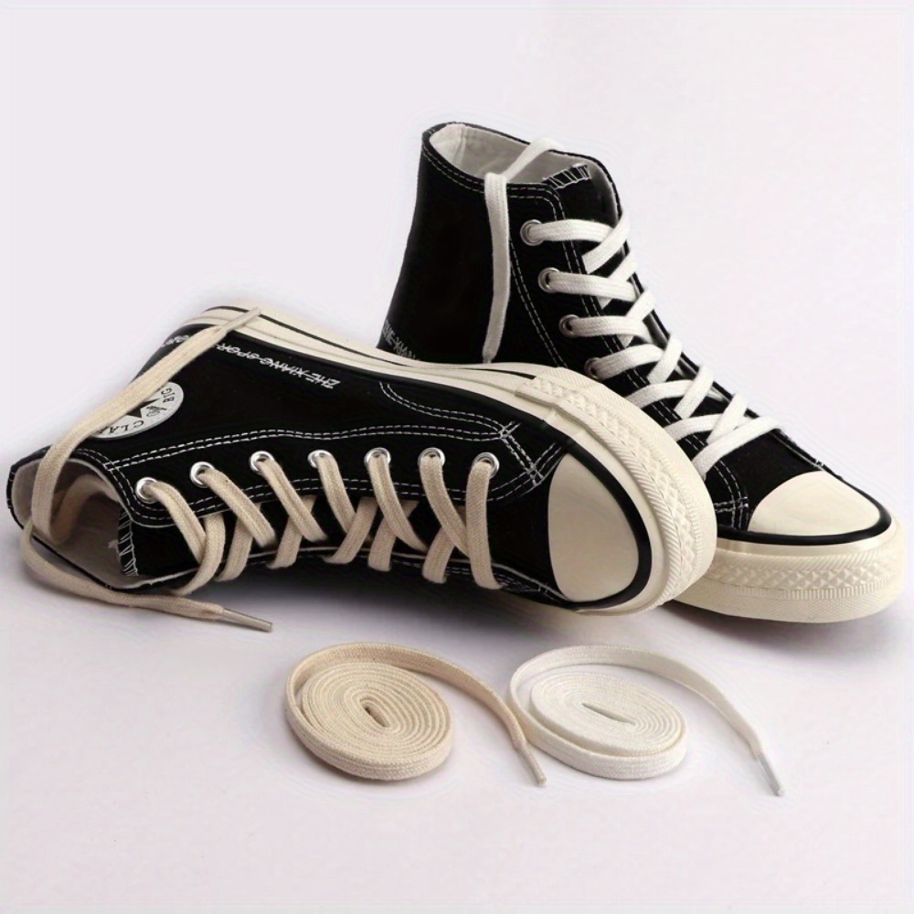 1 Pair Canvas Shoelaces Flat Cotton Laces For Sneakers Men Women White Beige