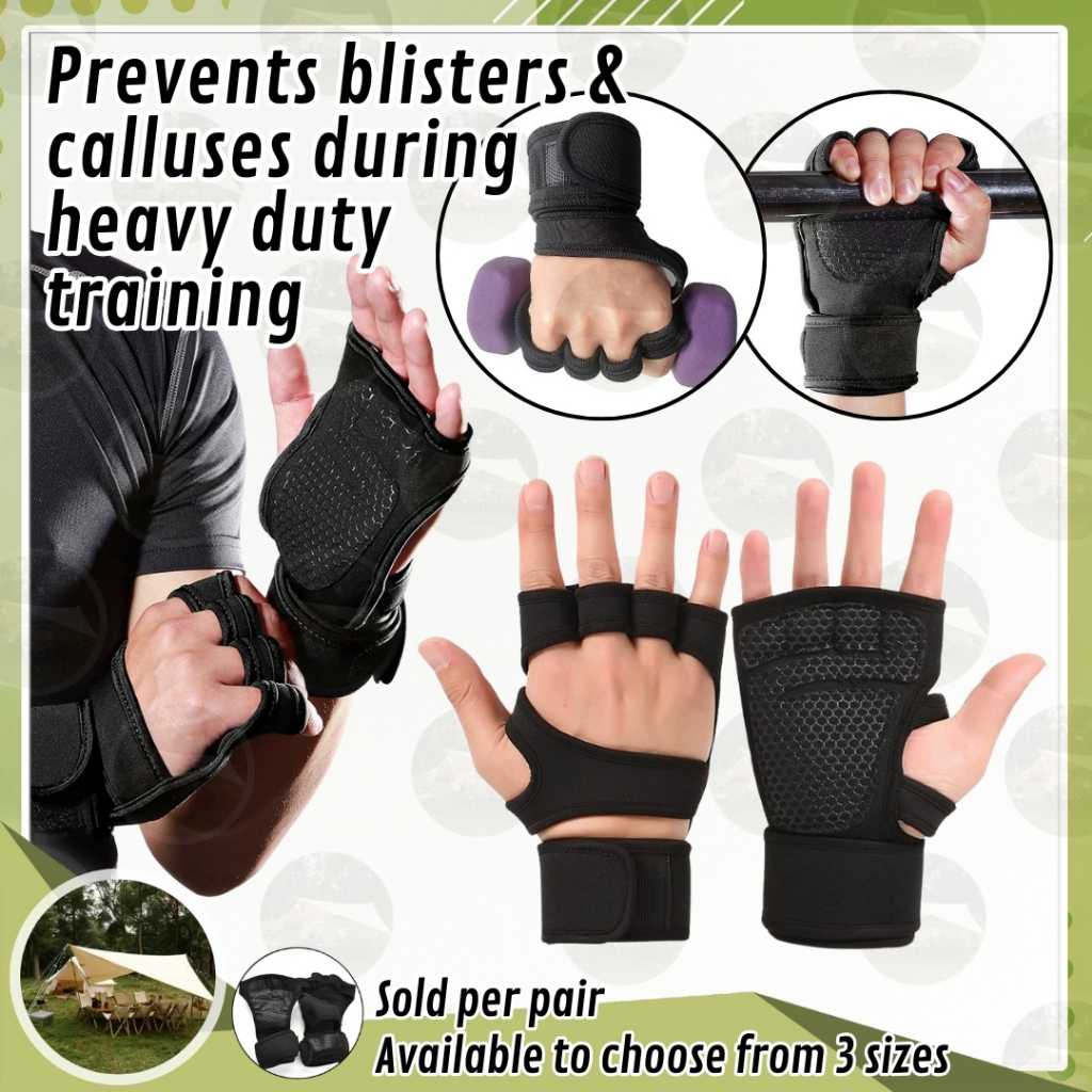 1 Pair Fitness Sports Hand Palm Weight Lifting Training Gloves Adjustable Grips Gym Body Building GO