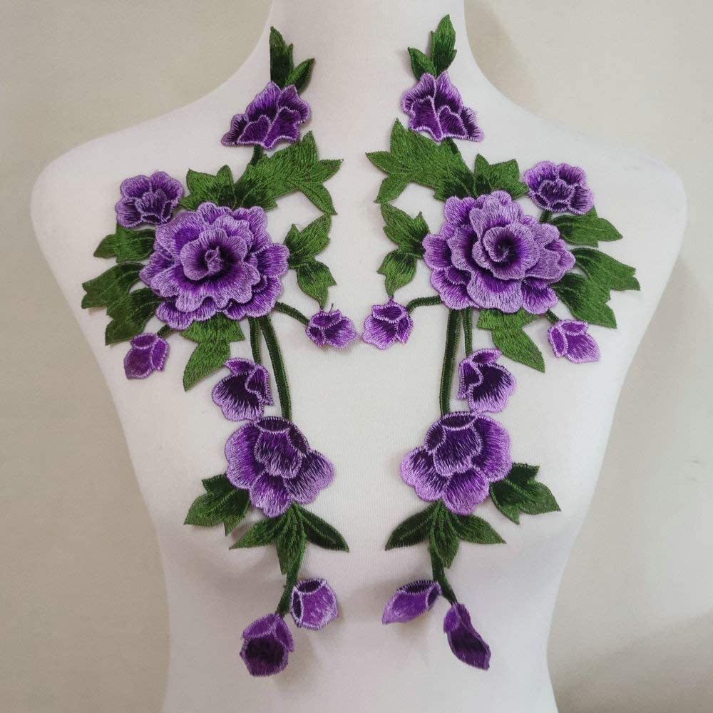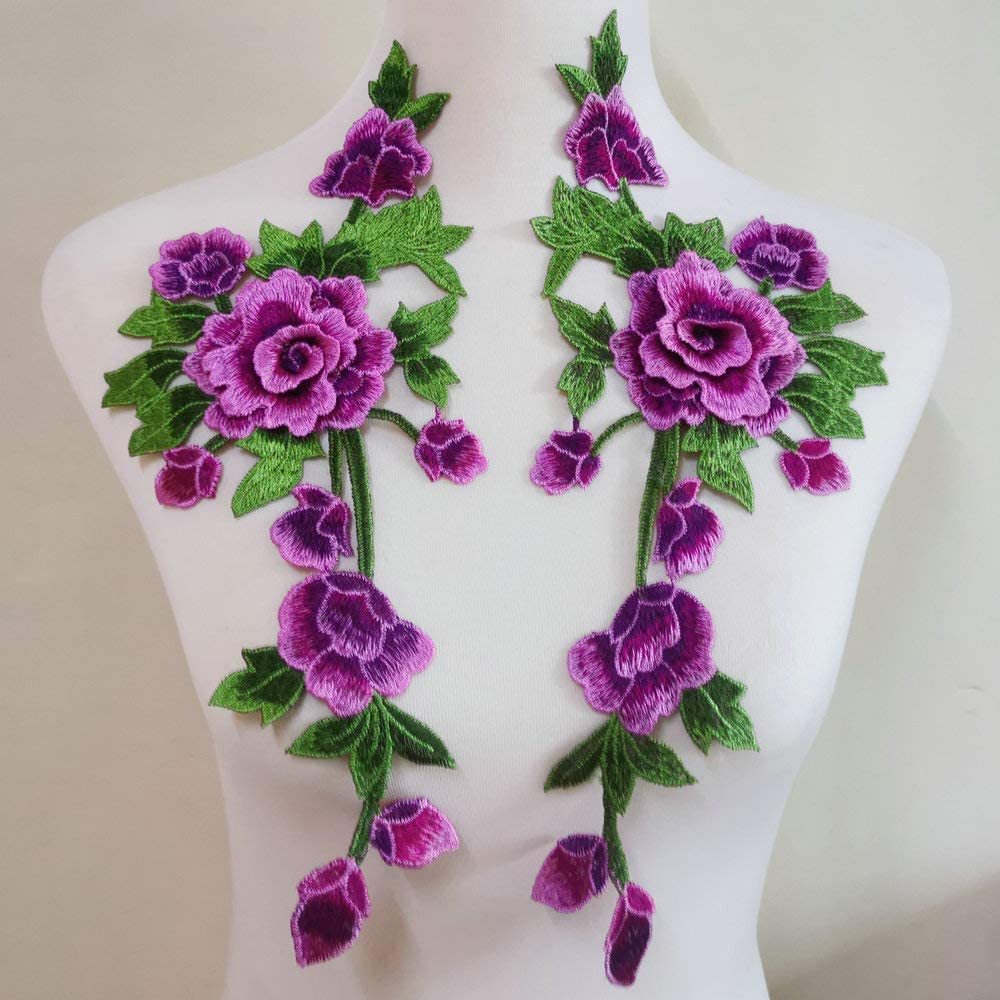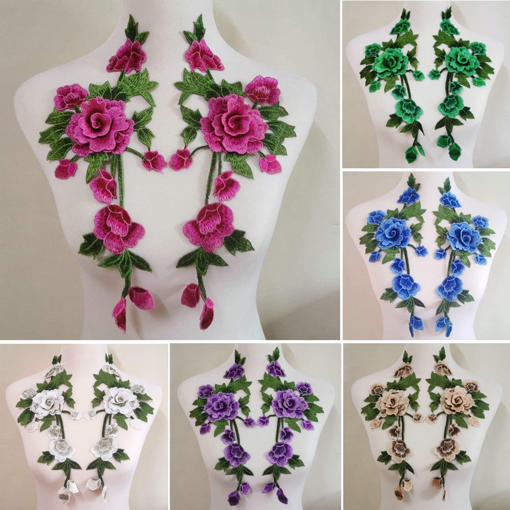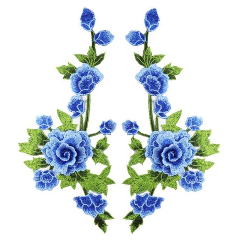 1 Pair Flower Embroidered Cloth Patch Repair For Women Cloth Decoration Applique Chinese Style 35*15CM