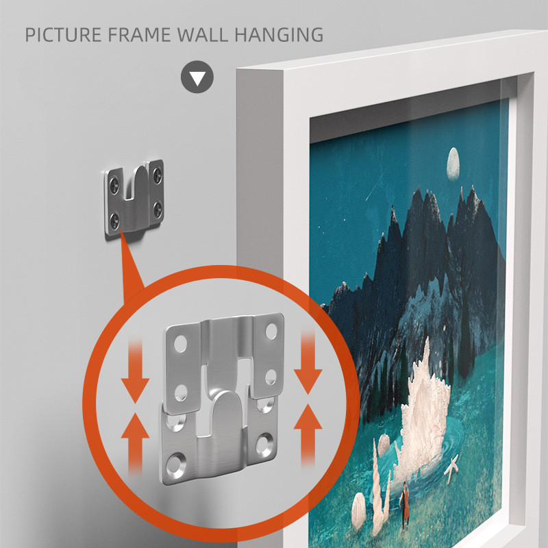 1 Pair Heavy Duty Display Picture frame Interlocking Brackets hook Stainless Steel Hanging Buckle