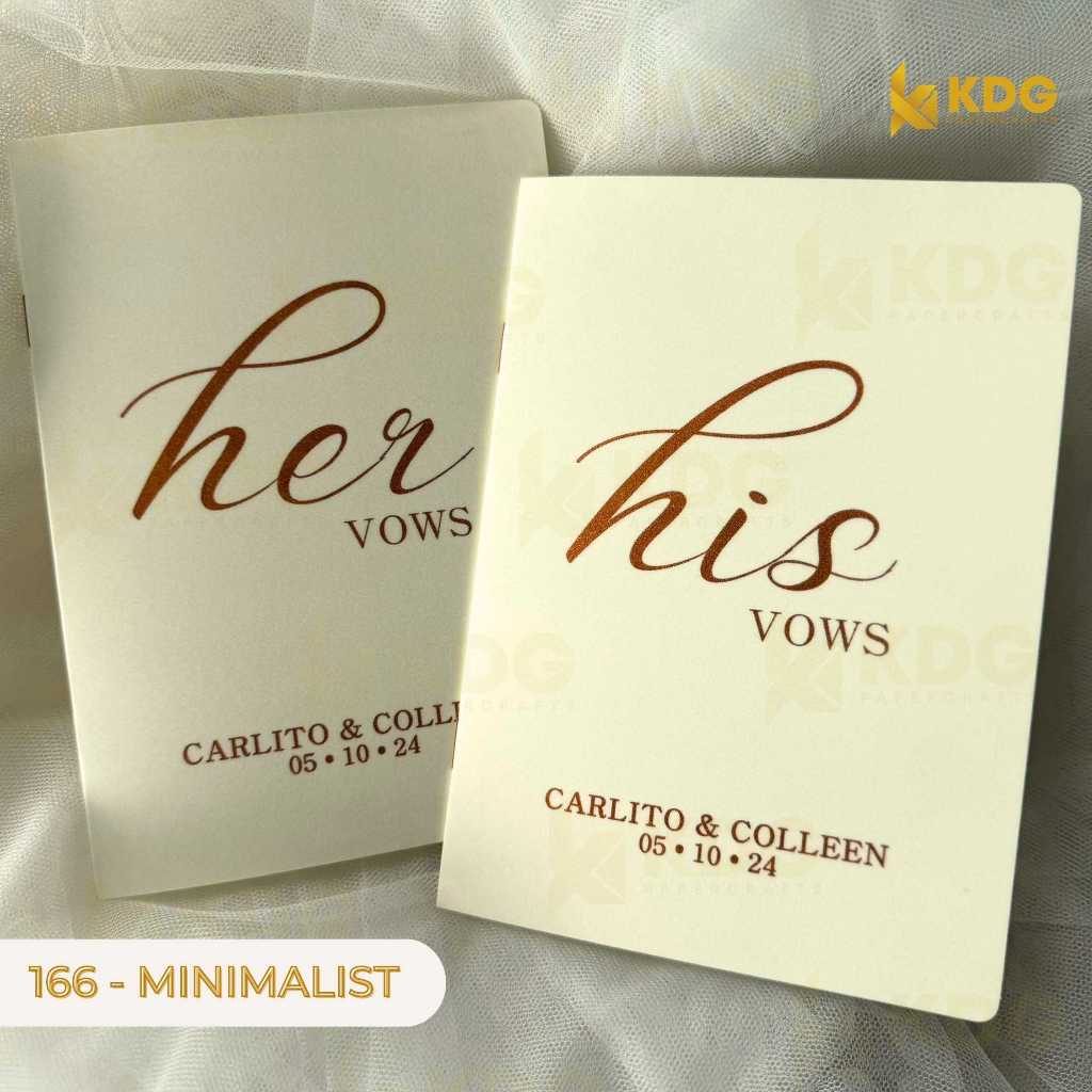 1 Pair - His and Her Vows Card METALLIC FONT - Minimalist Vows Card