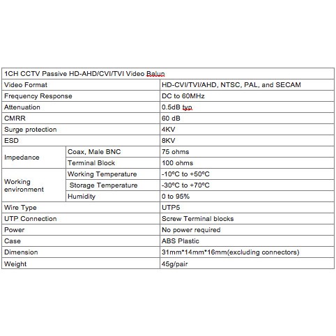 1 Pair Passive UTP Video Balun with Extension Cable Twisted BNC Video Balun Connector for CCTV 102E