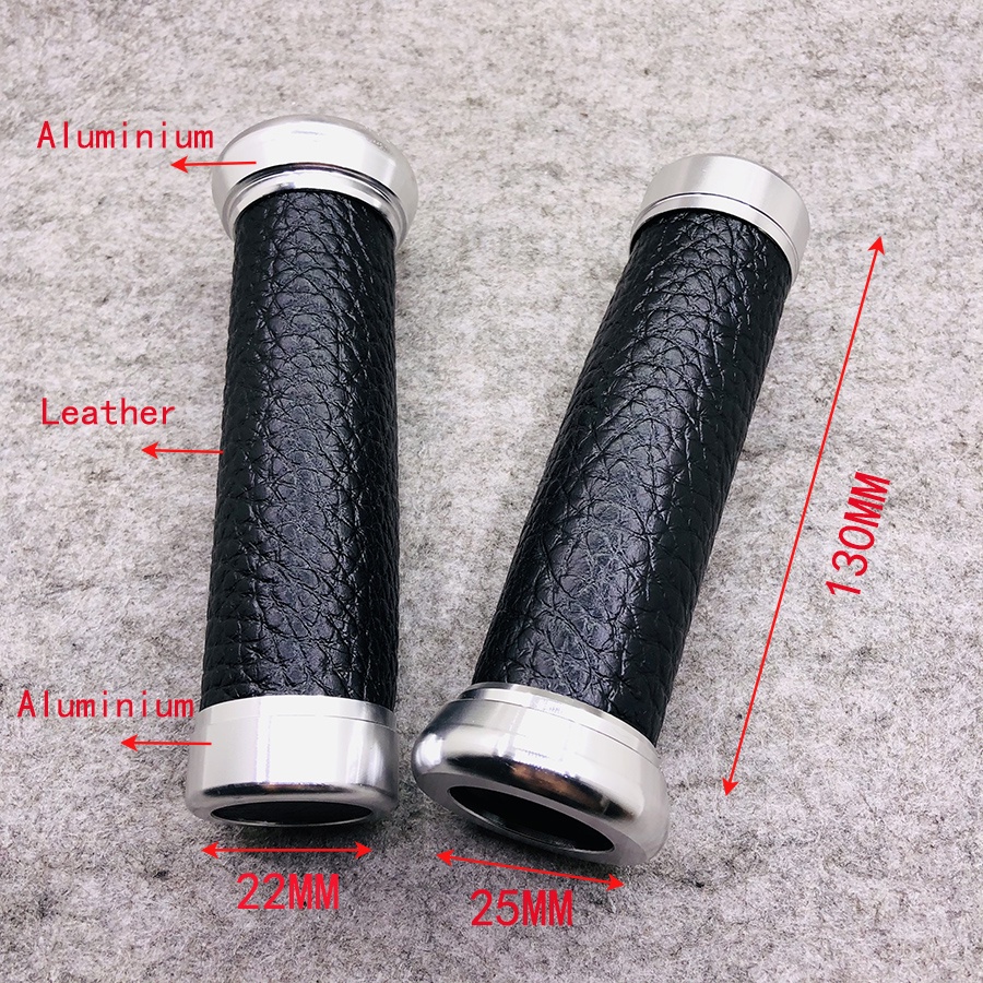 1 Pair Universal Aluminum Motorcycle Handlebar Grips 22MM 7/8'' Vintage Black Leather Motorbike Parts For Cafe Racer BMW