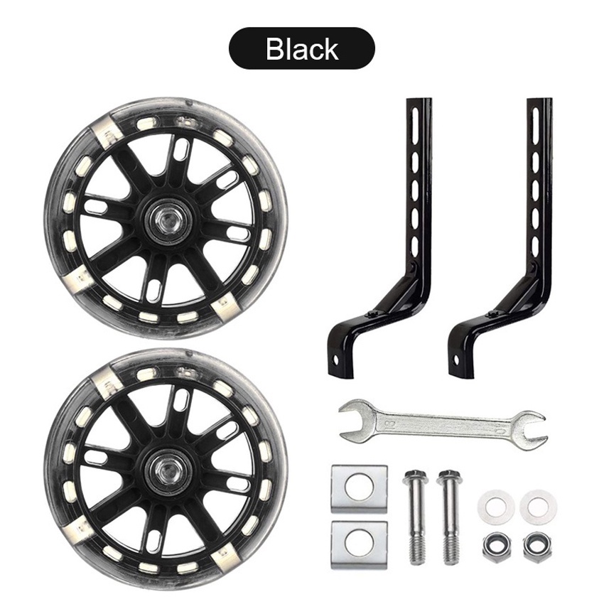1 Pair Universal Children Bike Balancer Auxiliary Wheel Kids Bike Training Wheels Black with Flash