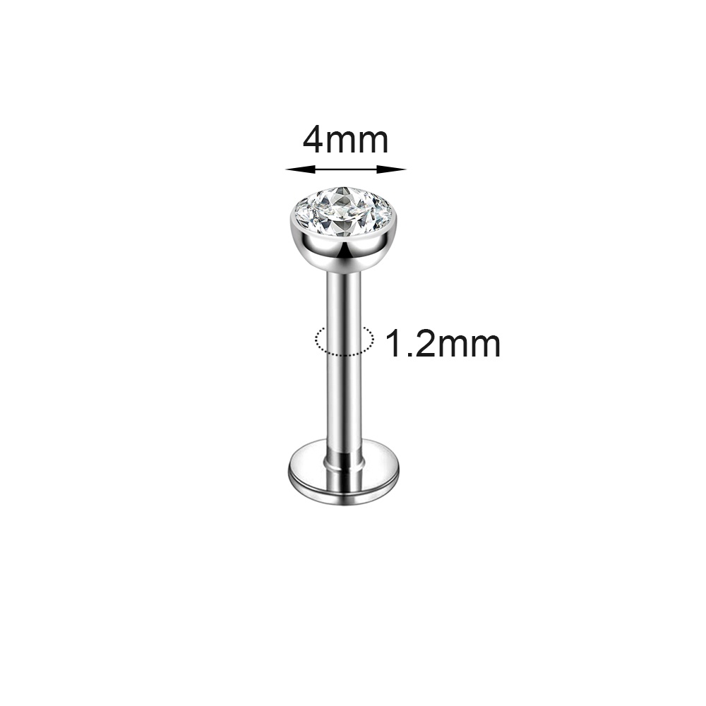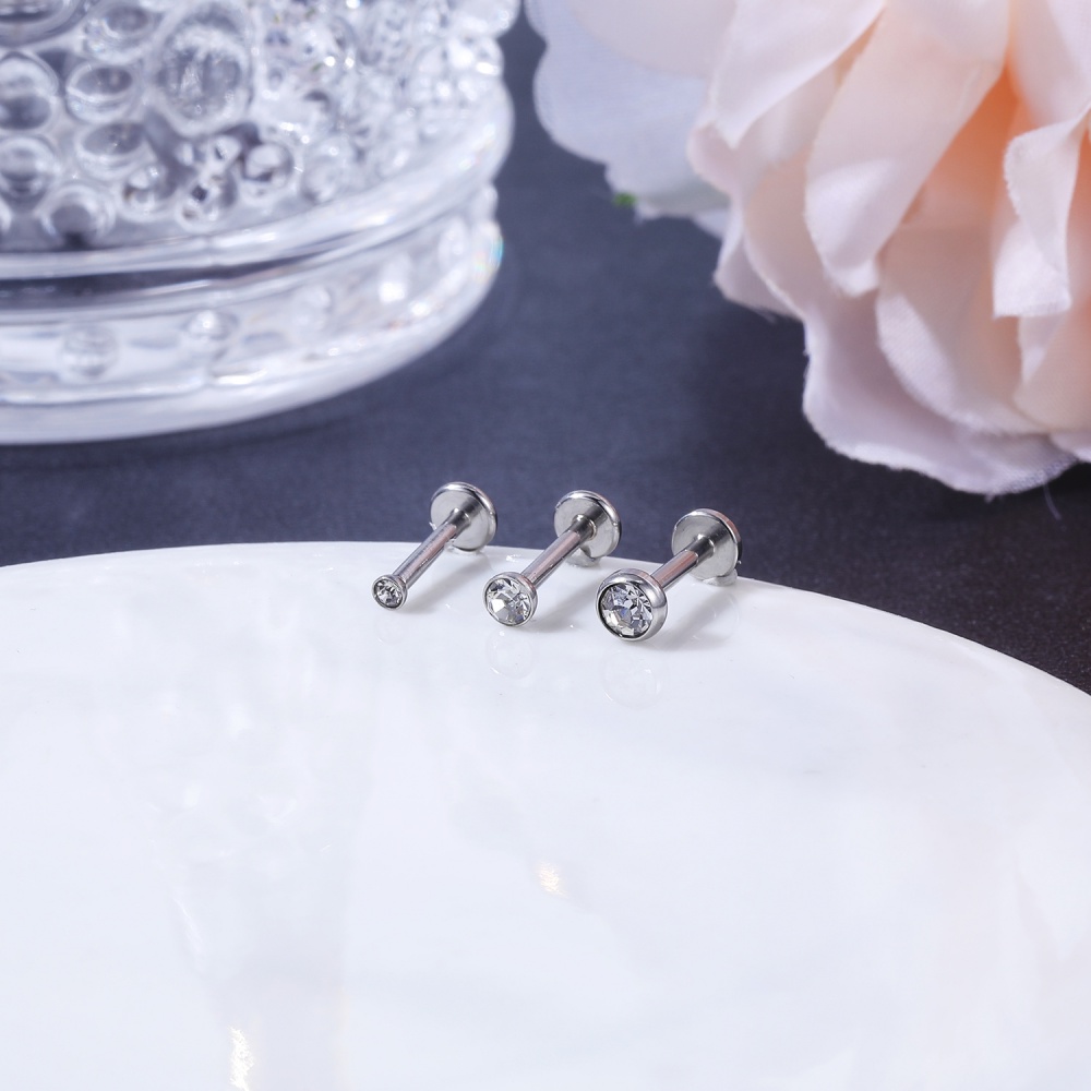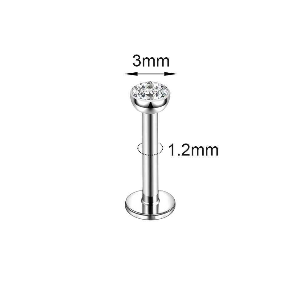 1 Pc Stainless Steel Lip Stud Shiny Crystal Labret Piercing Round Zircon Stud Earrings Cartilage Helix Tragus Piercings