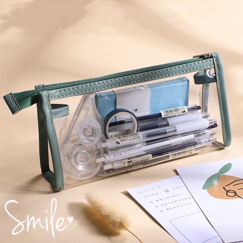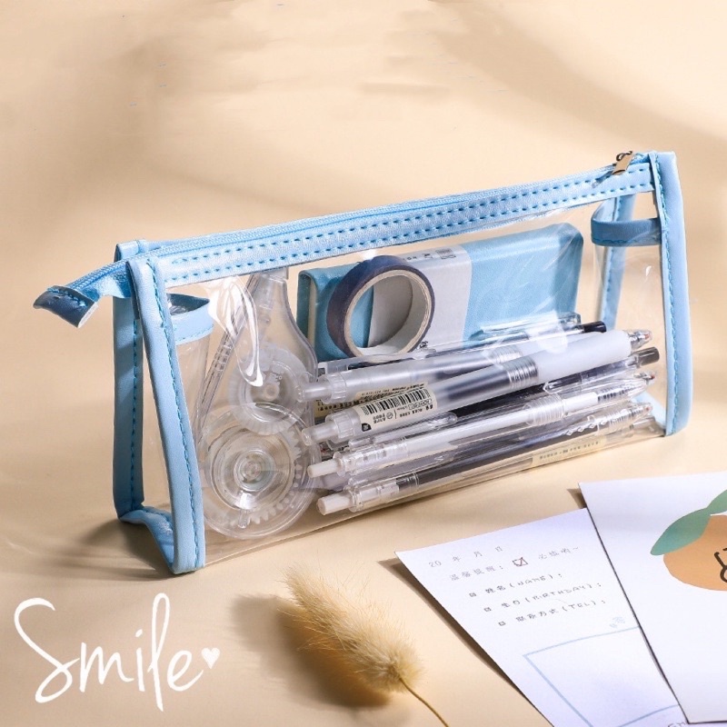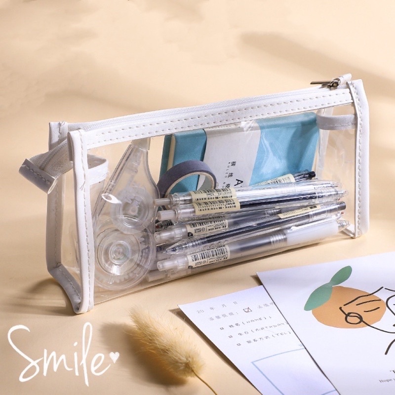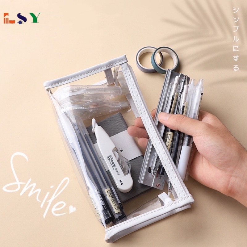 1 Pcs Ins Minimalist Transparent Pencil Case Style Clear Pencil Box Cosmetic Bag Student Stationery