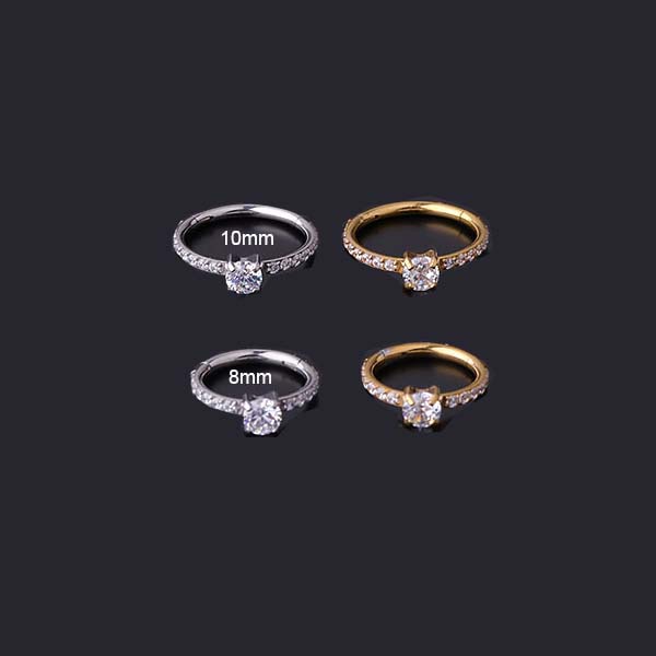 1 Piece 8mm/10mm Hoop Cartilage Earrings Titanium Steel Ear Pinna Helix Lobe Piercing 16Gauge with Zircon Hypoallergenic
