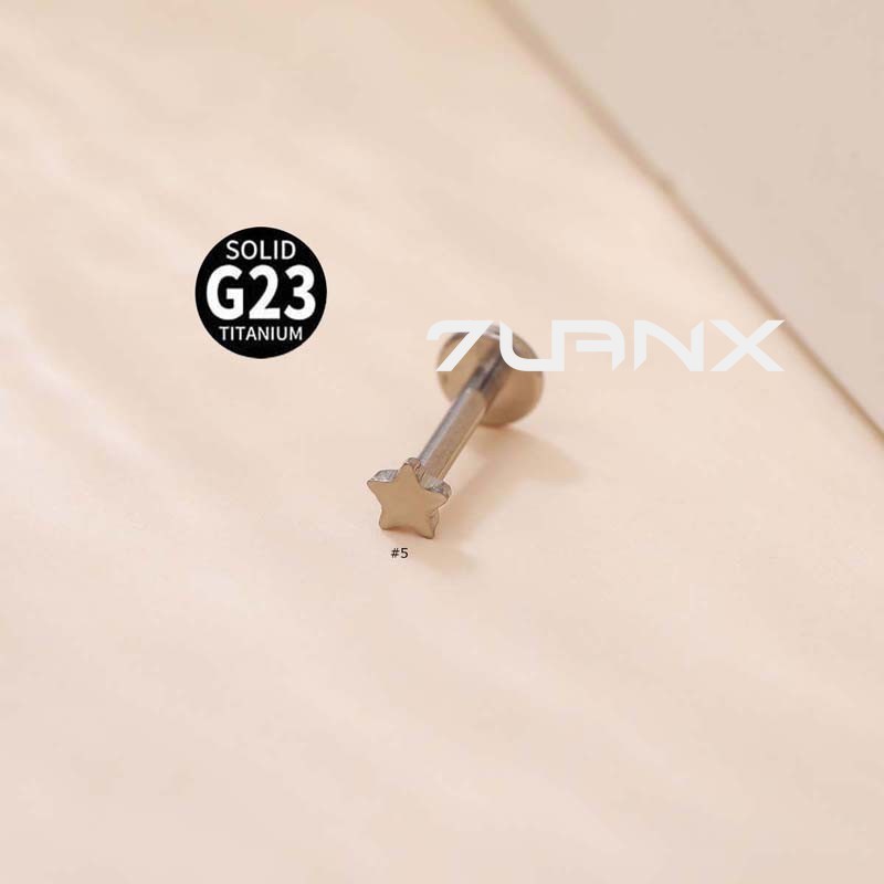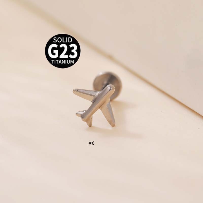 1 Piece G23 Titanium 16Gauge Fresh Hypoallergenic Ear Helix Pinna Piercing Flat Head Labret Lip Stud Heart Moon Star Cross Plane Lightning Butterfly Snake Cloud Shape