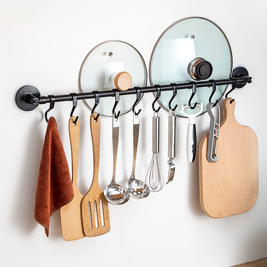 1 Piece Kitchen Hook Perforation-Free Hanger Viscose Sticky Hook Strong Wall Pot Lid Rack Hanging Rod Rotating Row Hook Spoon Shovel