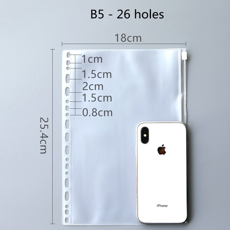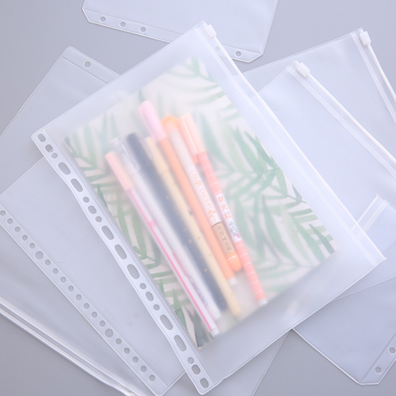 1 Piece PVC Transparent Punch File Organizer Storage Folder Loose Leaf Pouch Notebook Zipper Bag Binder Document
