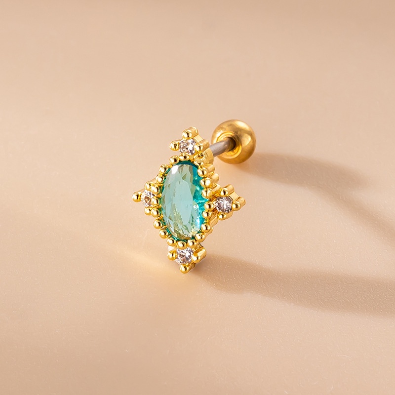 1 Piece Steel Double Unscrew Earrings for Pinna Helix Piercing 20Gauge with Blue Zircon
