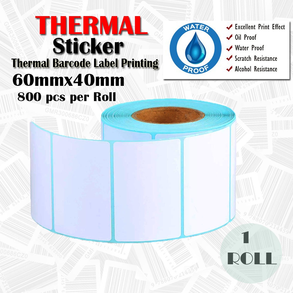 1 Roll 60mm*40mm thermal Label Adhesive Stickers 800 pcs per roll Thermal Sensitive Adhesive Sticker