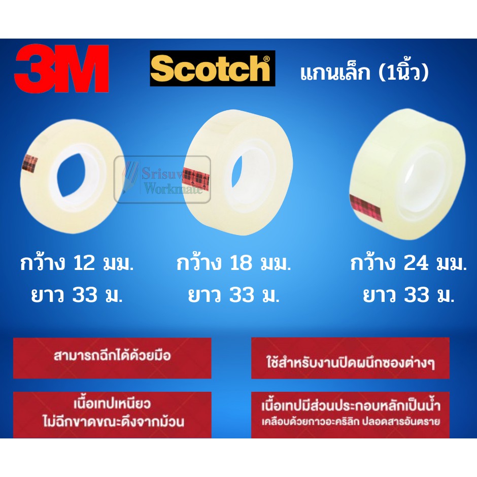 Separate Roll 1 3M Clear Tape Size 1/2 Inch (12 Mm.) 3/4 (18 1 (24 Small Core Transparent/Large Scotch 3M