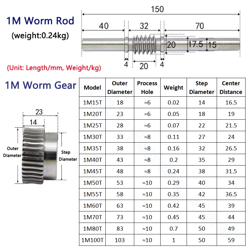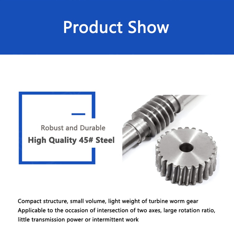 1 Set 1M Worm Gear with Rod Reduction Ratio 1:15/20/25/30/35/40/45/50/60/70/80/90/100 45# Steel Turbine Worm Gear Rod CS46