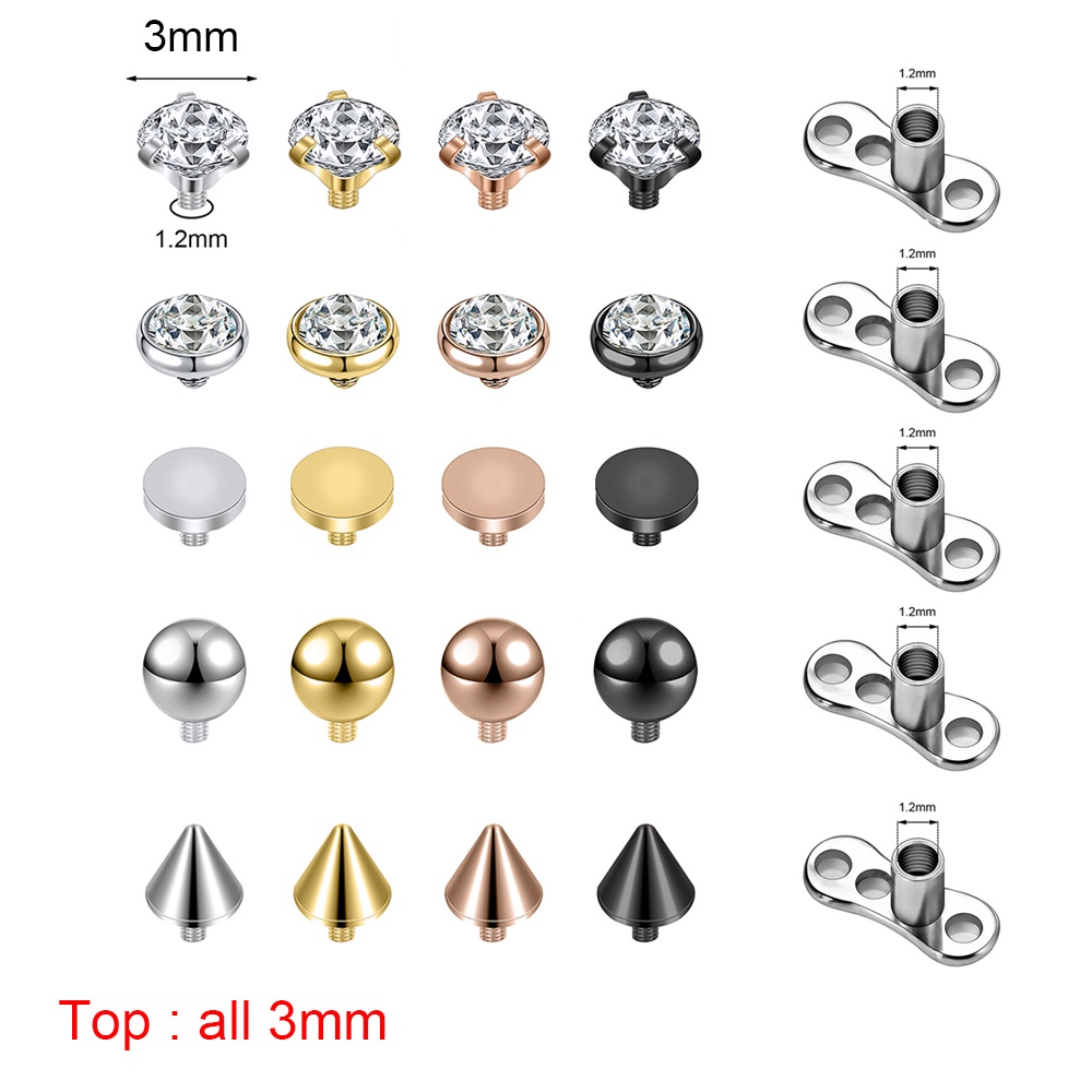 1 Set 2.5/3/4mm Surgical Steel Crystal Micro Dermal Piercing Opal Dermal Anchor Surface Piercings Skin Diver Medusa Piercing