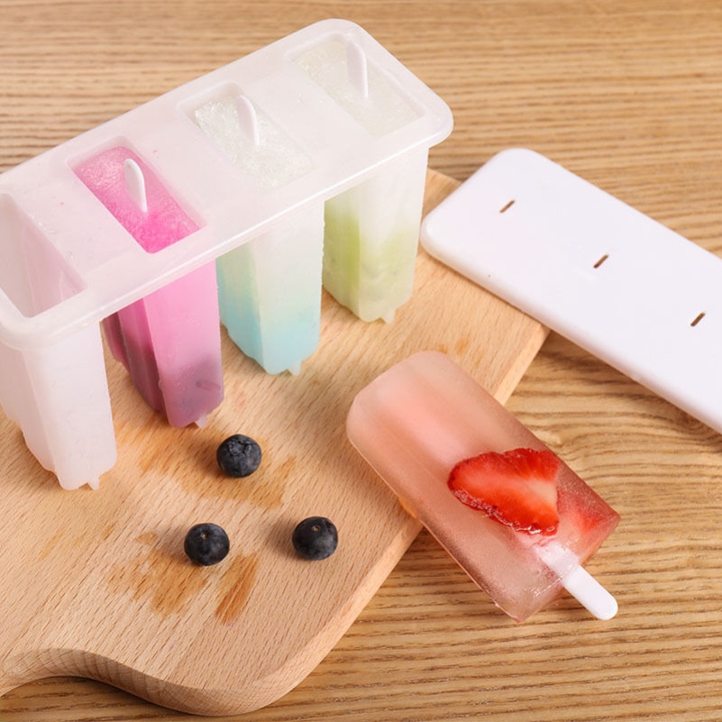 1 Set 4 Cells Popsicles Mold/DIY Big Size Ice Cream Mold/Food Grade PP Material Popsicle Maker/Homemade Popsicles Mold Tools