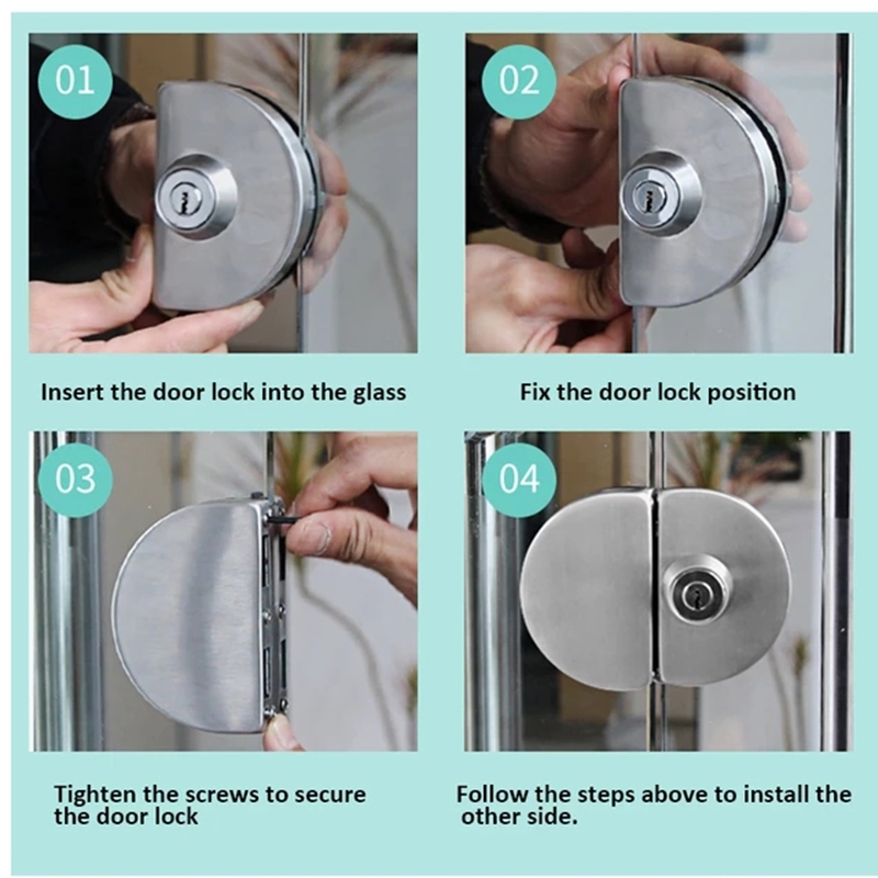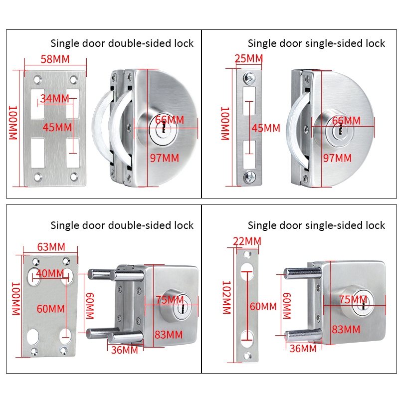1 Set Double Open Glass Door Lock Stainless Steel Double Bolt Sliding Door Lock 8-14mm Office Glass Safety