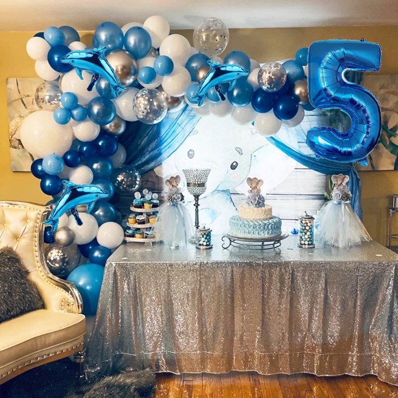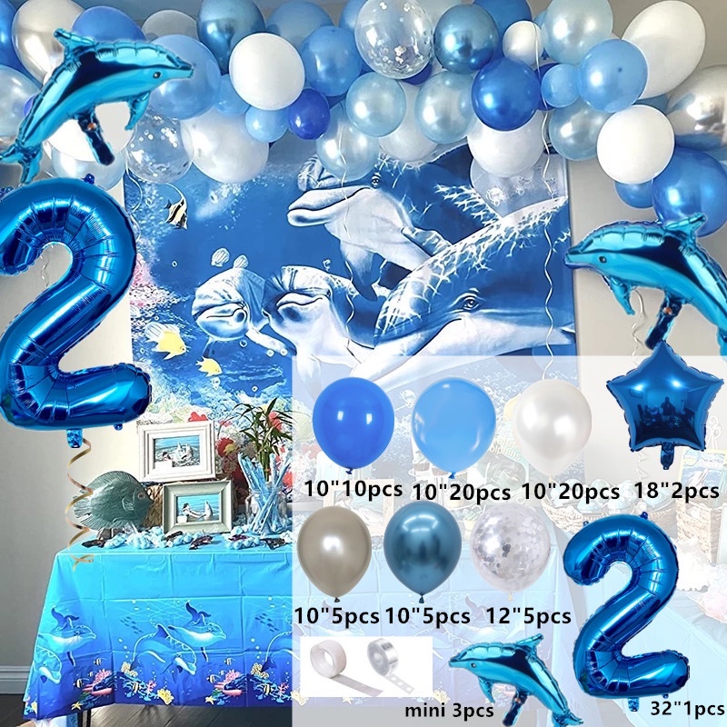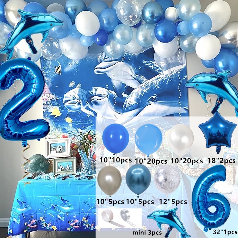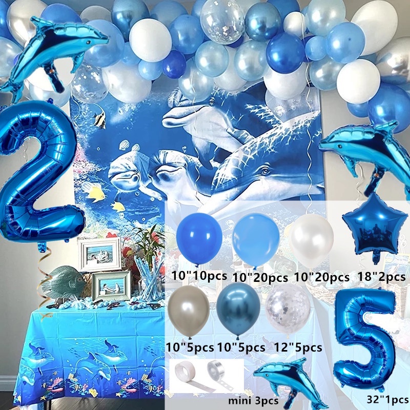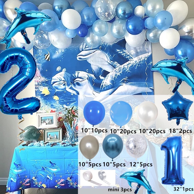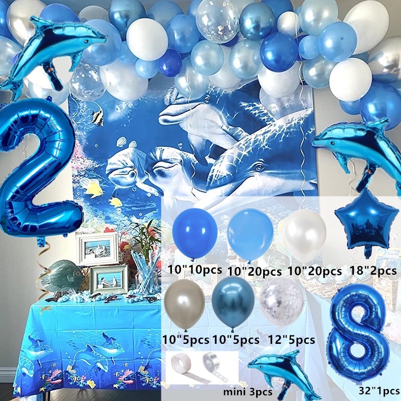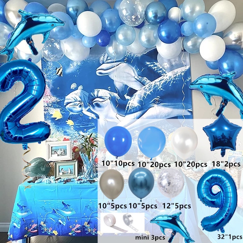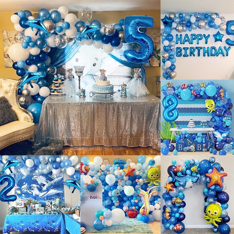 1 Set Ocean Themed Balloons party decorations Shark Foil Balloons Blue Tie Latex Balloons Ocean Theme Party Supplies Balloon Party Decorations Wedding Baby Shower Kids Birthday Party Decorations