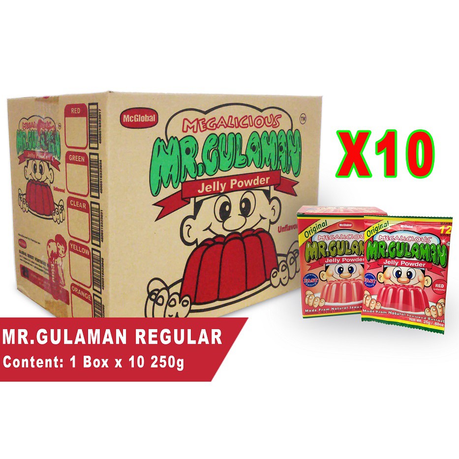 1-box Mr.Gulaman Jelly Powder Red, Green, Orange, Yellow, Clear/White X10 x 250g