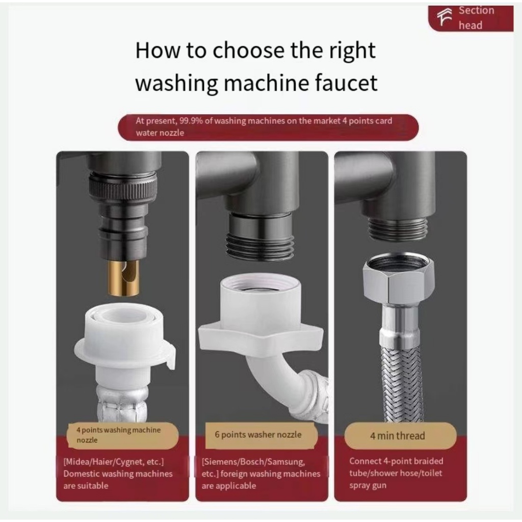 1 in 3 Out Faucet Dual Control Valve with Bidet Washing Machine Tap Two Way Toilet Angle Valve