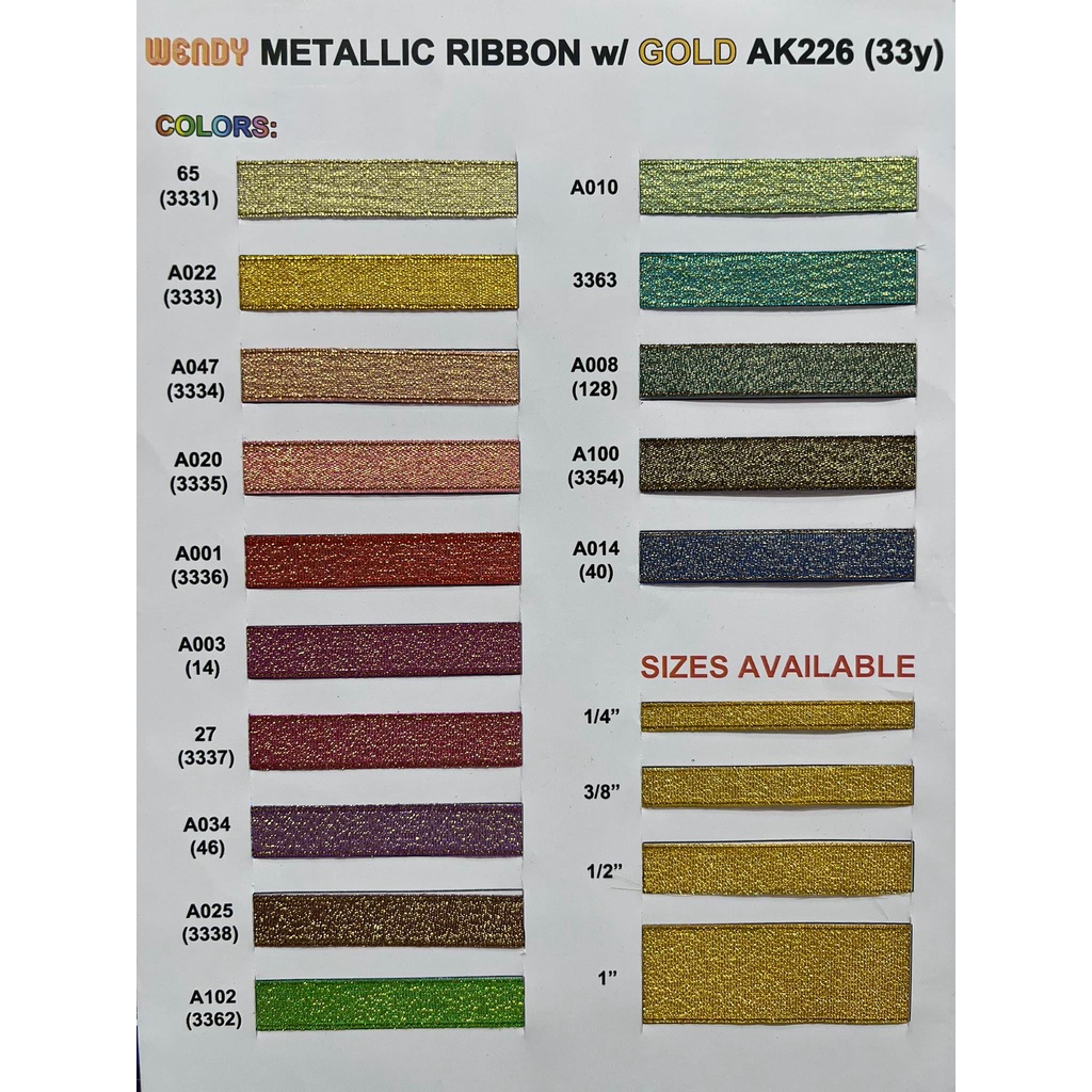 1 inch Metallic Ribbon with Gold AK226 Wendy Brand (33 yards per roll)