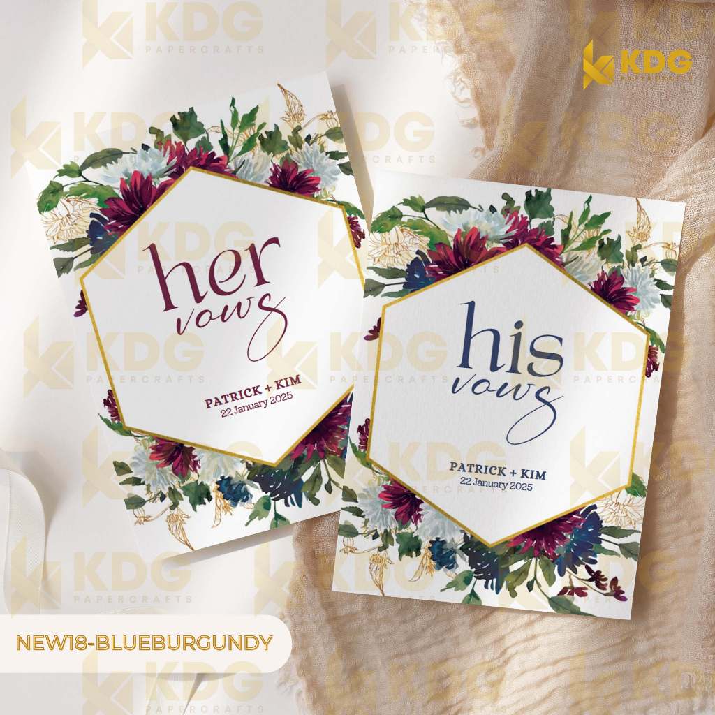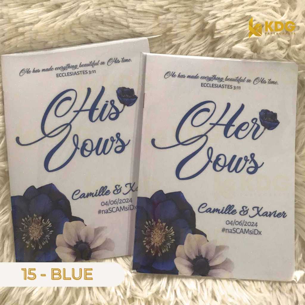1 pair - His and Her Wedding Vows Card - Shades of Blue / Dusty Blue / Navy Blue / Royal Blue