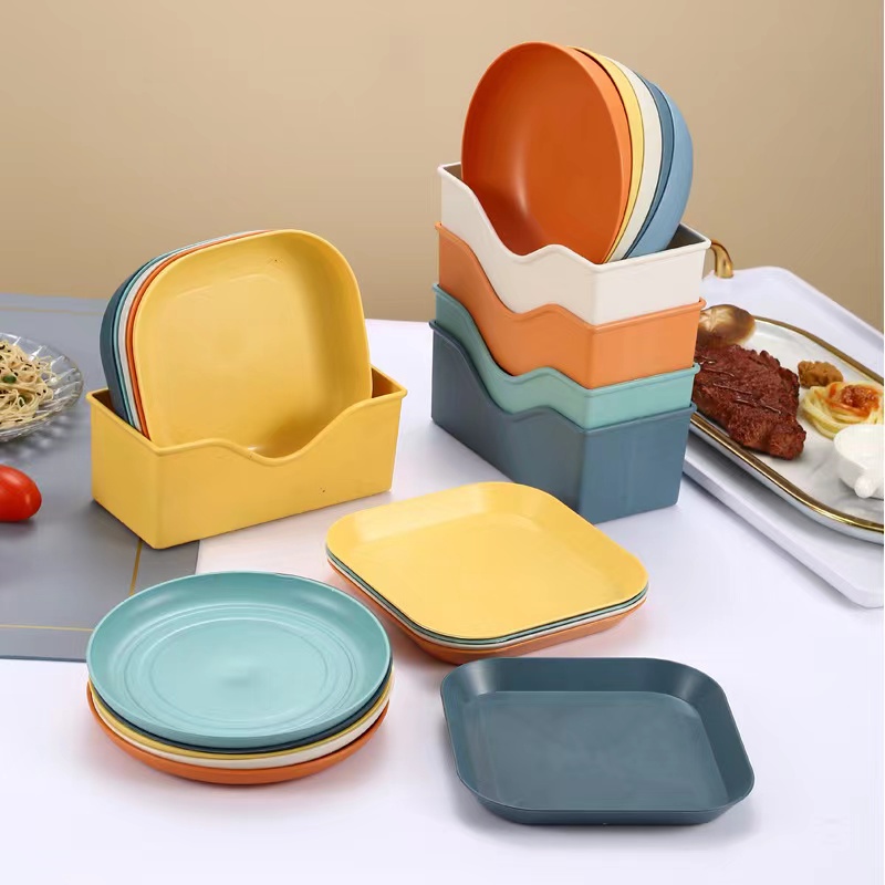 1 pc Japanese style pastel color straw plastic flat dish plate set dinnerware dining kitchen tools
