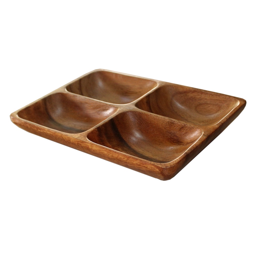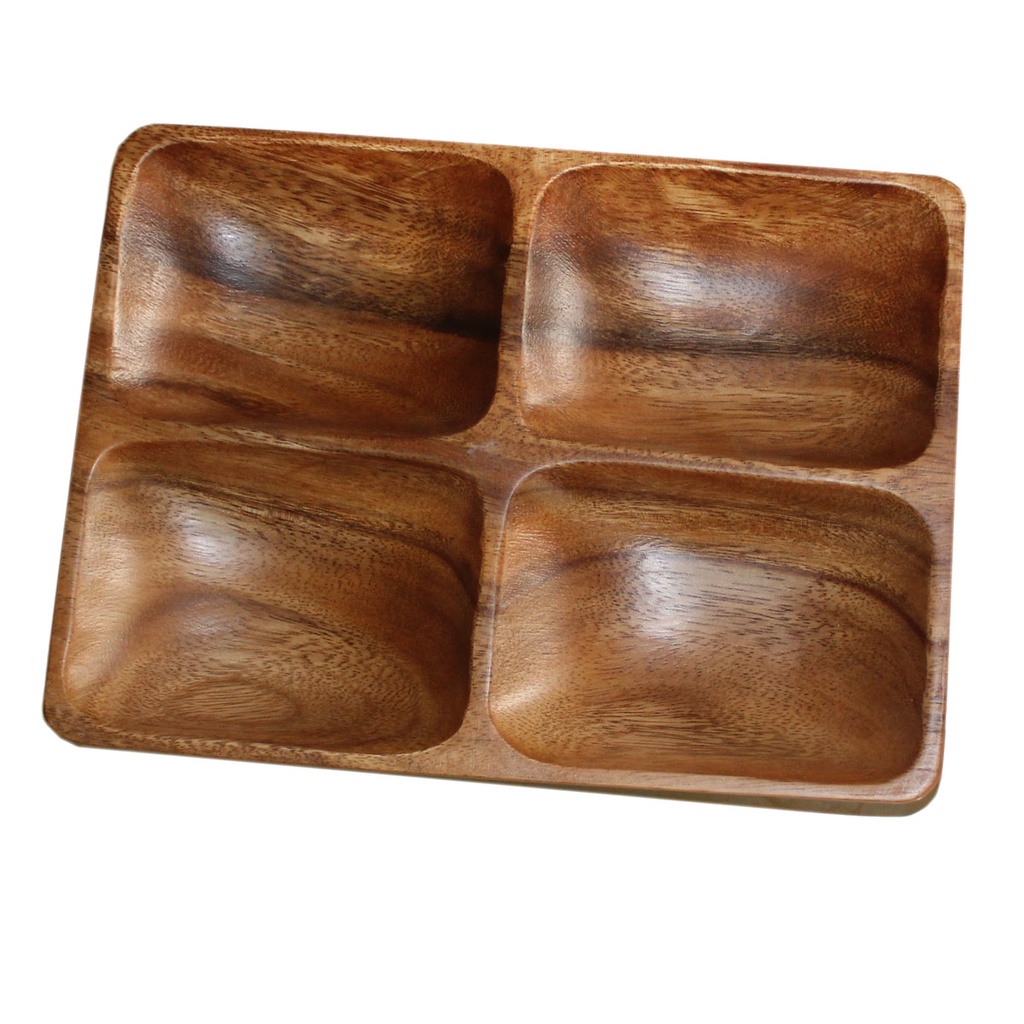 1 pc Rectangular Wooden Plate w/ 4 Compartment 1.5x7.5x10.5 inches - Food Safe