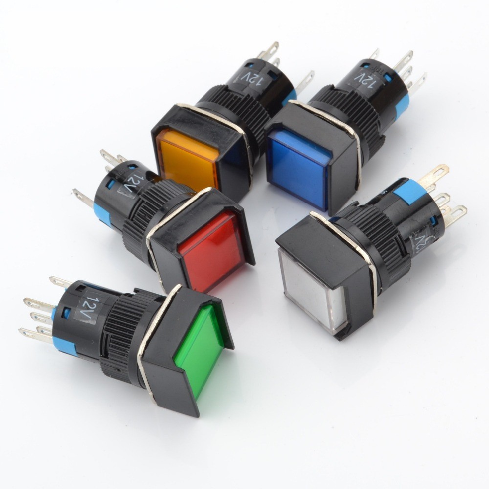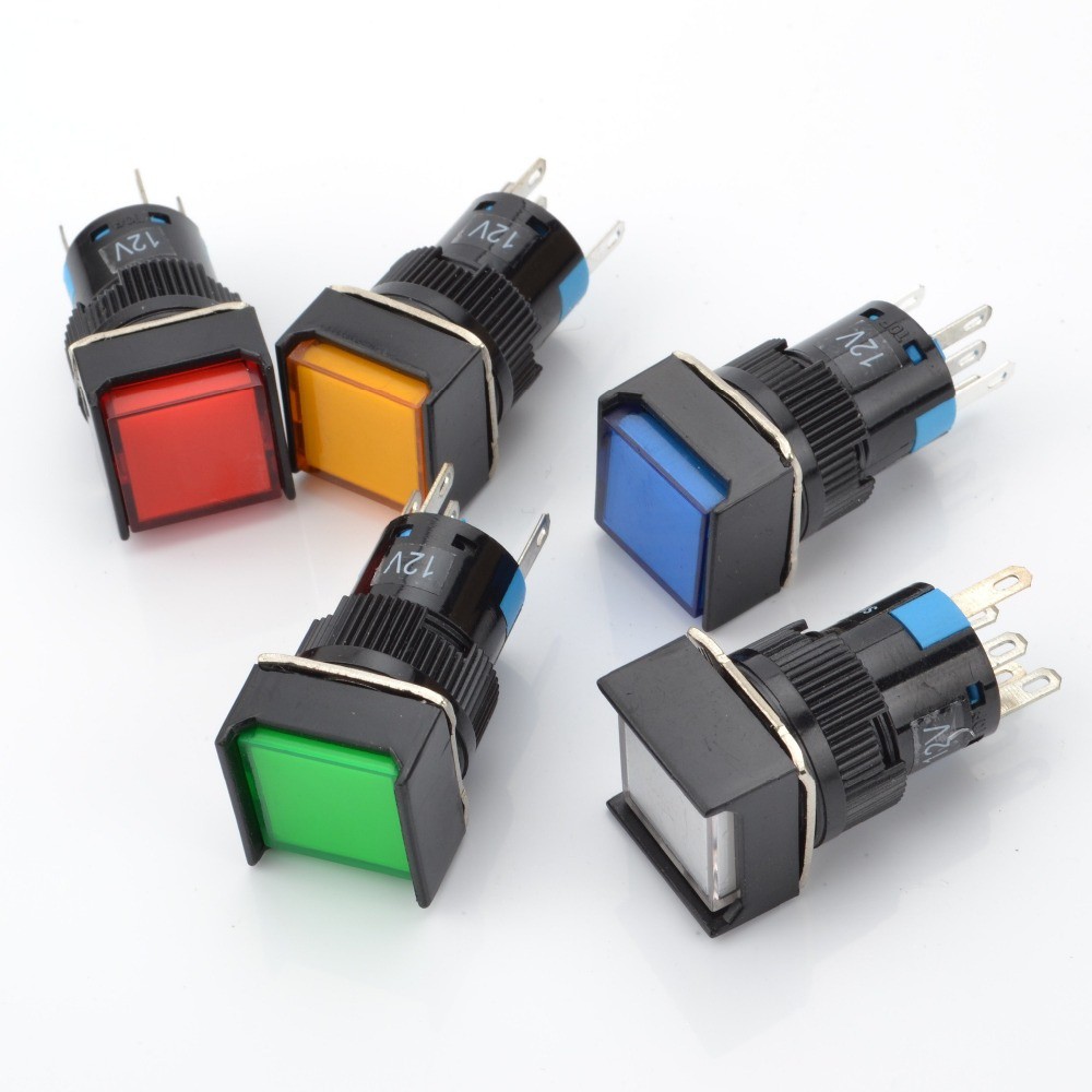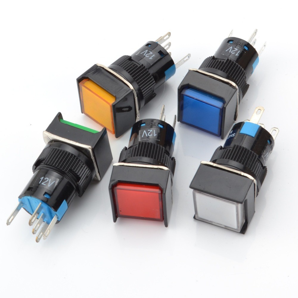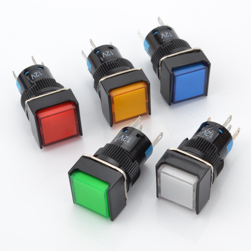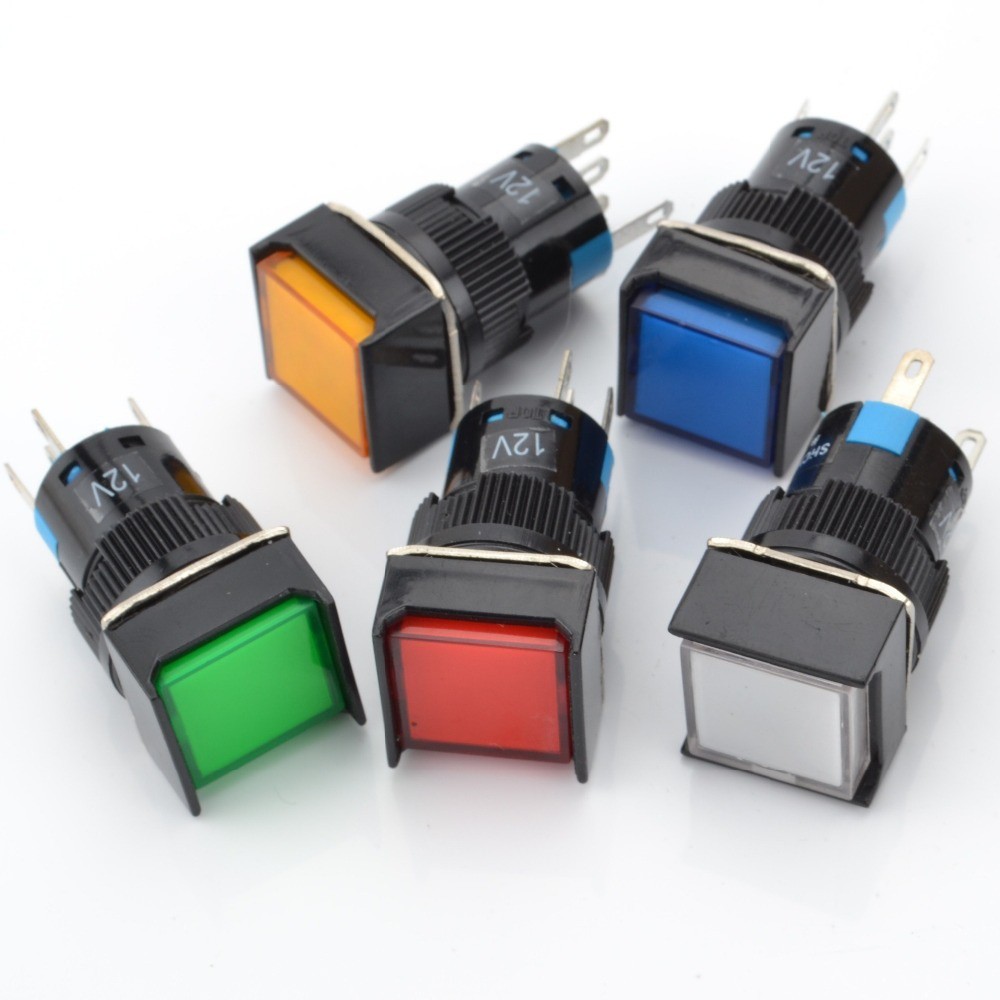 1 piece 5v / 12V /24V / 220v self-locking / momentary 16mm push button switch LED 5 pin lamp square push button switch