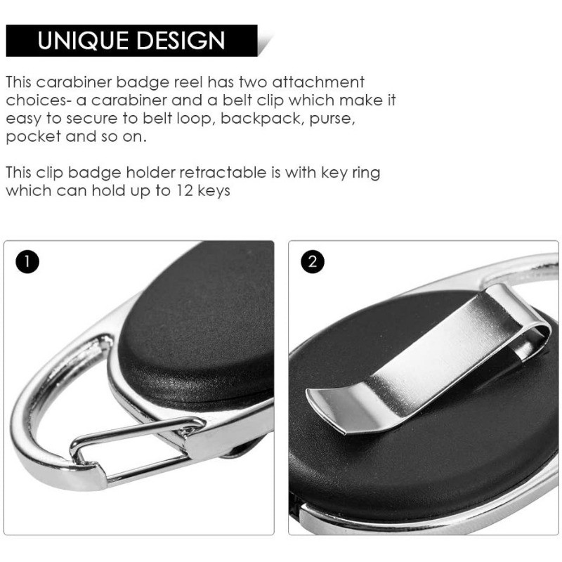 1-piece Set of ID Buckle, Retractable Badge Clip, Heavy-duty Retractable Keychain Holders Carabiner Reel Clip
