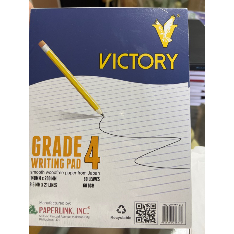 10pads Victory Writing Pad 80lvs Japan wood free paper Grade 1 2 3 4 60GSM