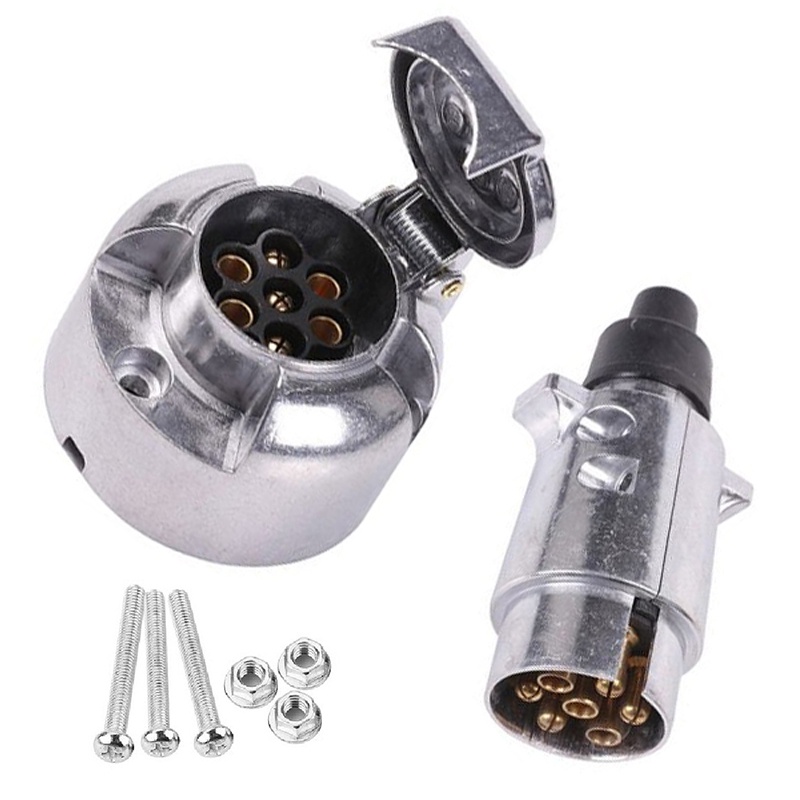 1 set 12V N Type 7 pin Metal Trailer Towing Plug & Socket with Fittings & Gasket